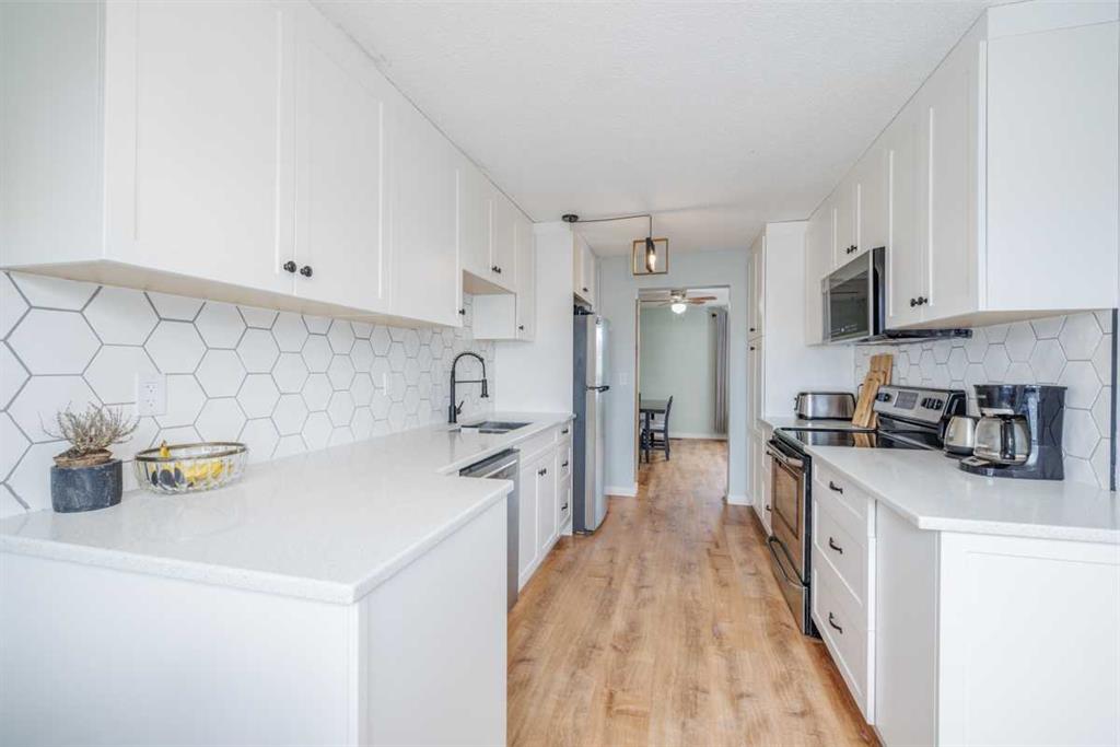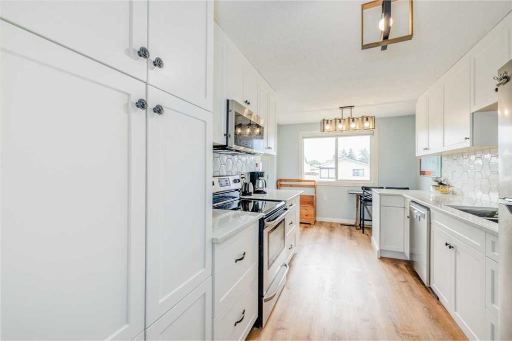 Beautifully updated 2 storey home on a quiet street backing onto a greenbelt & bike path. From the moment you arrive you will appreciate the work put into this home. The main floor features a renovated kitchen with quartz counter tops, stainless steel appliance, custom cabinets with a built in pantry & lots built in storage space. The kitchen leads into the spacious dining area & living room with great views out into the private backyard. An updated half bath and a separate entrance complete the main floor. The upper level has 2 large kids rooms, a master suite and updated 4 pc bathroom. The lower level is fully developed with a flex room/office, a spacious rec room or media room and lots of additional storage in the laundry/mechanical room & also under the stairs. This home has seem many recent updates including, roof, windows, hot water tank, paint, flooring, lighting, bathrooms, kitchen, appliances, exterior doors to name a few. All this on a fully fenced and landscaped yard with an oversized paved driveway with room for 5 vehicles or RV parking, new front walkway, huge wrap around deck perfect for summer entertaining and a wonderful, fruit bearing apple tree. The backyard faces East with no neighbors behind and is backing onto greenbelt & bike paths. Close to major shopping areas, schools, parks & playground. A lovely home ready for it\'s new family to move in and enjoy! Call your favorite Realtor to book a viewing!!