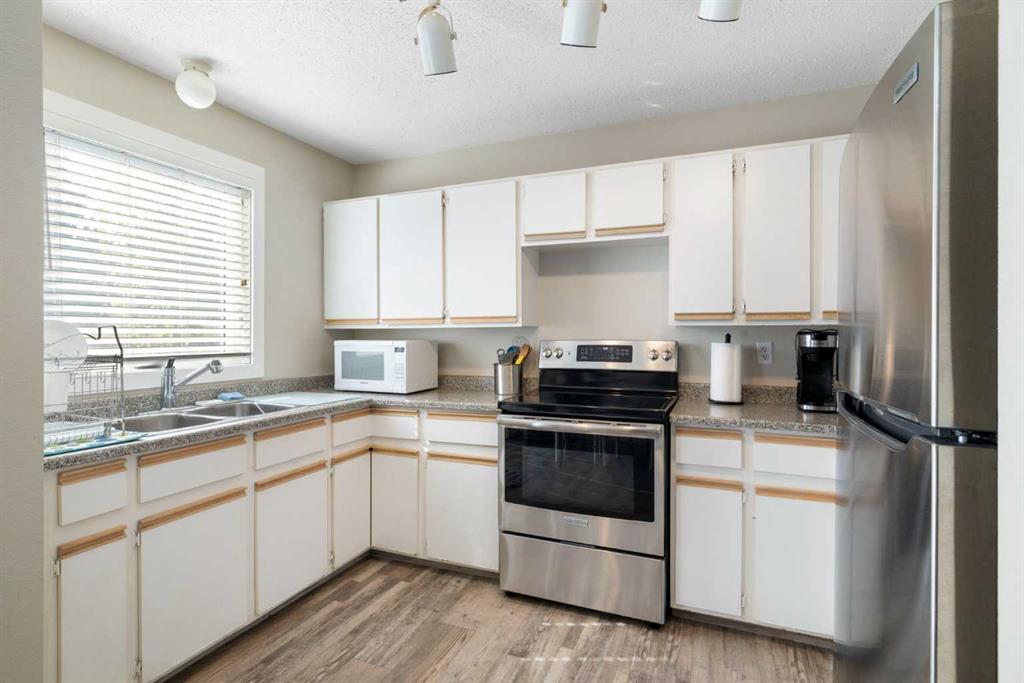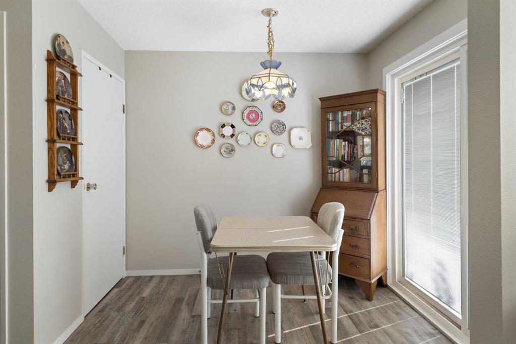 Step inside to a bright main floor featuring durable luxury vinyl plank flooring and the added comfort of CENTRAL AIR CONDITIONING—perfect for keeping cool during Calgary’s warmer months. The spacious living room opens into a large kitchen with a window overlooking your private, FENCED BACK YARD—an ideal setup for families or pet owners. The kitchen flows naturally into the dining area, which offers direct access to the outdoor space, making it easy to enjoy barbecues, gardening, or quiet evenings under the stars.