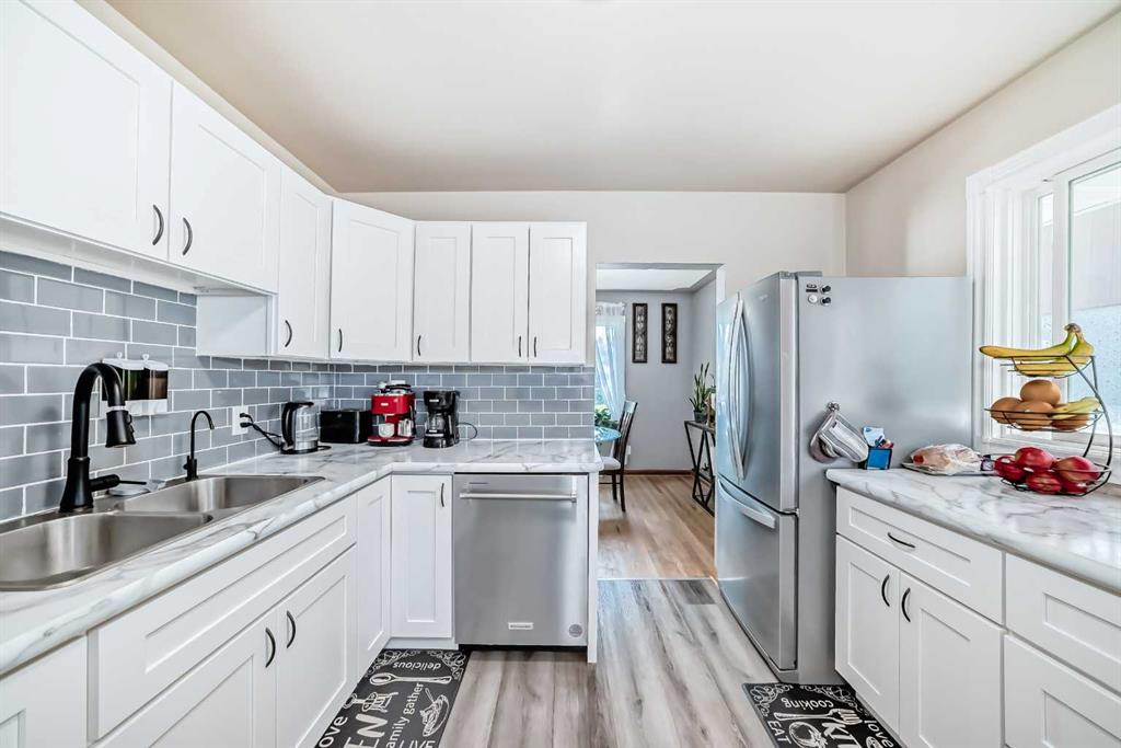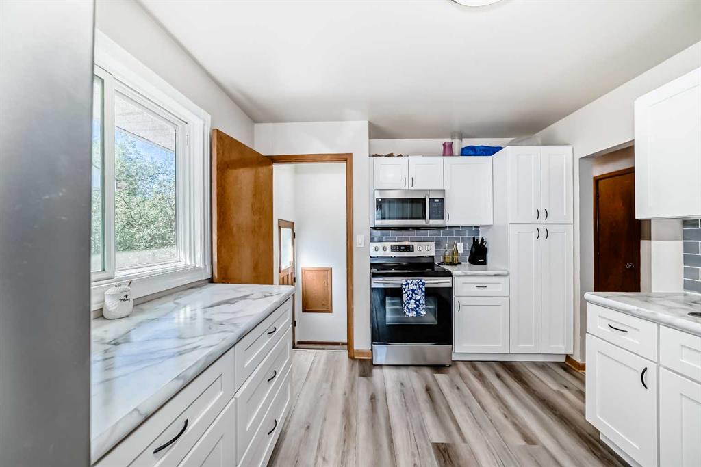 This rock-solid 1,042 sq. ft. four-bedroom bungalow has been lovingly maintained, thoughtfully upgraded & is bathed in natural light on the main floor. Of the many upgrades, this home features approx $10,000 worth of high quality, triple-pane windows throughout, enhancing warmth, energy efficiency, and peaceful quiet inside. The renovated kitchen and main floor bathroom blend modern convenience with timeless character. The main floor living room, hallway and dining room are complemented by original oak hardwood flooring. A set of newer stainless steel appliances elevates the kitchen, making it a joy for cooking and entertaining. Head down to this fully finished basement area that boasts new carpeted flooring & fresh paint in the large family room / flex room area. This will be a great area for the kids to play, or set up that home gym and home office. Extended family will appreciate the 4th bedroom ( with legal Egress Window ) and a 3 pc bath on this level as well. A cold room at the end of the hall and more storage in the utility room. With a side entrance, this layout offers the potential for future, separate living space for extended family or a roommate. ( AirBNB or extended family living space ) Outside, the spacious \"WEST facing\" yard offers a concrete patio perfect for summer gatherings & plenty of year round Alberta Sun. A large 24’ x 24’ two-car garage, and a gravel parking pad for additional vehicles or RV storage. All of this is nestled on a tranquil, tree-lined street that reflects the youthful and welcoming vibe of Mayland Heights. If you’re looking for a home that combines inner-city accessibility, community charm, and solid upgrades, ( on a 120 ft deep lot ) this bungalow is ready to impress.