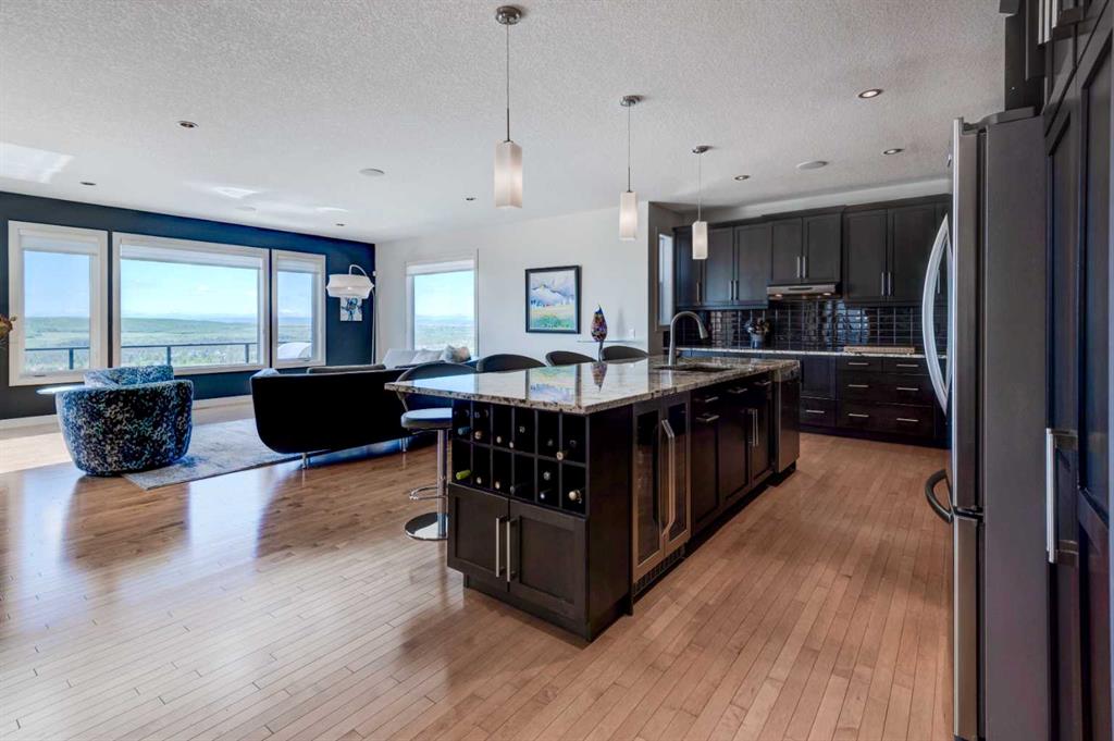 Breathtaking Mountain Views, Exceptional Design! Perched atop a scenic ridge, this stunning Baywest two-storey walkout offers jaw-dropping views that stretch to the horizon and an extraordinary landscaping package. With over 4,000 sq. ft. of luxurious living space, this home is a masterpiece of craftsmanship and comfort. The main floor boasts an open-concept layout, featuring a gourmet chef’s kitchen with granite countertops, maple hardwood flooring, 9’ ceilings, designer lighting, and expansive windows that bathe the space in natural light. Step outside to an oversized deck, seamlessly extending your living space to the great outdoors. Upstairs, the primary retreat features vaulted ceilings, a spacious walk-in closet, and a serene 5-piece en suite spa bathroom. Two additional bedrooms, a 4 piece bath, and a generous Bonus Room complete the upper level. The professionally finished walkout basement includes a media and entertainment area, butler’s bar, flex space currently set up for wine tastings, a fourth bedroom, full bath, and access to zen-inspired terraces—your private sanctuary. Recent updates include a luxurious hot tub just outside the walkout level and a custom outdoor drip watering system for effortless plant care.