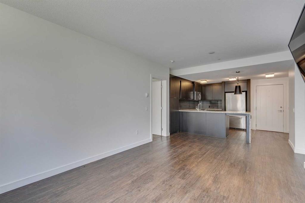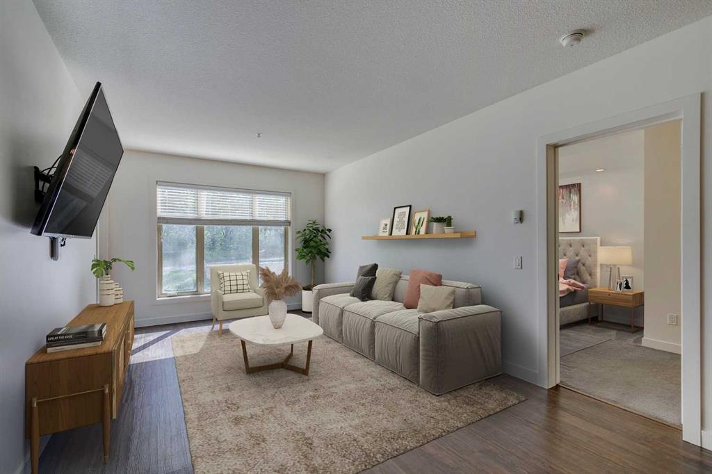 Nestled within the serene community of Aspen Woods, this charming 2-bedroom, 2-bathroom condo exudes comfort and style, offering a perfect blend of modern living and natural beauty. With its inviting open-concept layout and thoughtful design, this residence provides a warm and welcoming ambiance from the moment you step inside. Upon entering, you are greeted by a spacious living space, with natural light streaming through the large windows, creating an airy atmosphere.  The seamless flow between the kitchen, living room (and dining if you wish) makes entertaining a breeze, allowing for effortless interaction with family and guests. The well-appointed kitchen boasts contemporary flat panel cabinetry, built in pantry, granite countertops, sleek tile backsplash, and stainless-steel appliances, providing both functionality and style for the aspiring chef. Whether preparing a quick breakfast or hosting a gourmet dinner party, this culinary space is sure to inspire. The spacious living room provides ample space for relaxation and entertaining, as well as additional room for a dining space, if you so desire. Step out the garden door to your private patio…and enjoy a quiet cup of coffee in the morning, or relax after a long day.  The primary suite serves as a peaceful retreat, featuring a generously sized bedroom, two closets, and a spa inspired ensuite including double sinks, a stand up shower and separate soaker tub.  The second bedroom is equally well-appointed, offering ample space, natural light, and convenient access to the adjacent full bathroom (also with dual sinks). Whether utilized as a guest room, home office, or personal sanctuary, this versatile space can easily adapt to suit your individual needs. For added convenience, this unit also offers insuite laundry, titled parking, a storage locker as well as access to building amenities including gym, bike storage, rentable guest suites and visitor parking.  Aspen Woods offers an array of amenities for residents to enjoy, including lush green spaces, walking trails, grocery store, shopping and recreational facilities. Whether you prefer a leisurely stroll through the neighborhood or a day of outdoor adventure, there is something for everyone to enjoy in this idyllic setting. Don\'t miss your opportunity to make this dream home a reality – schedule your private showing today!