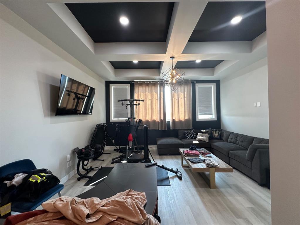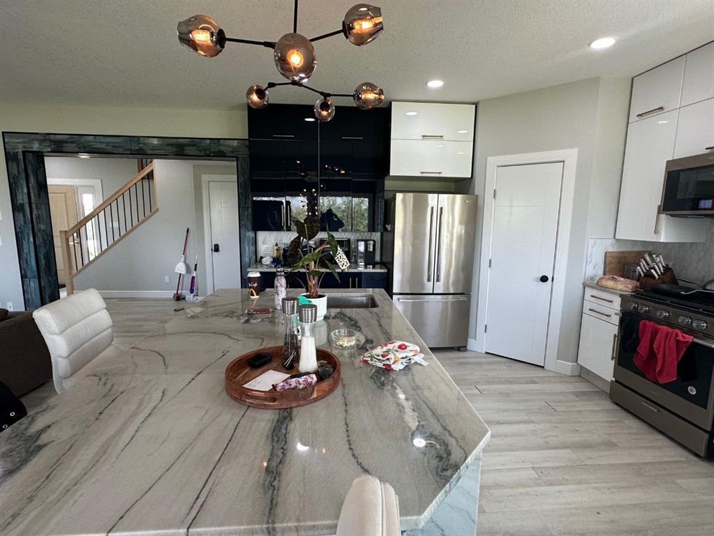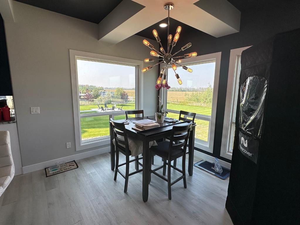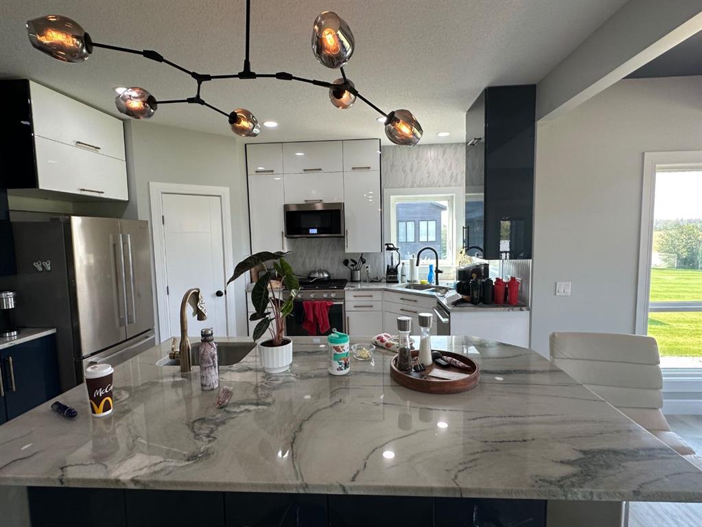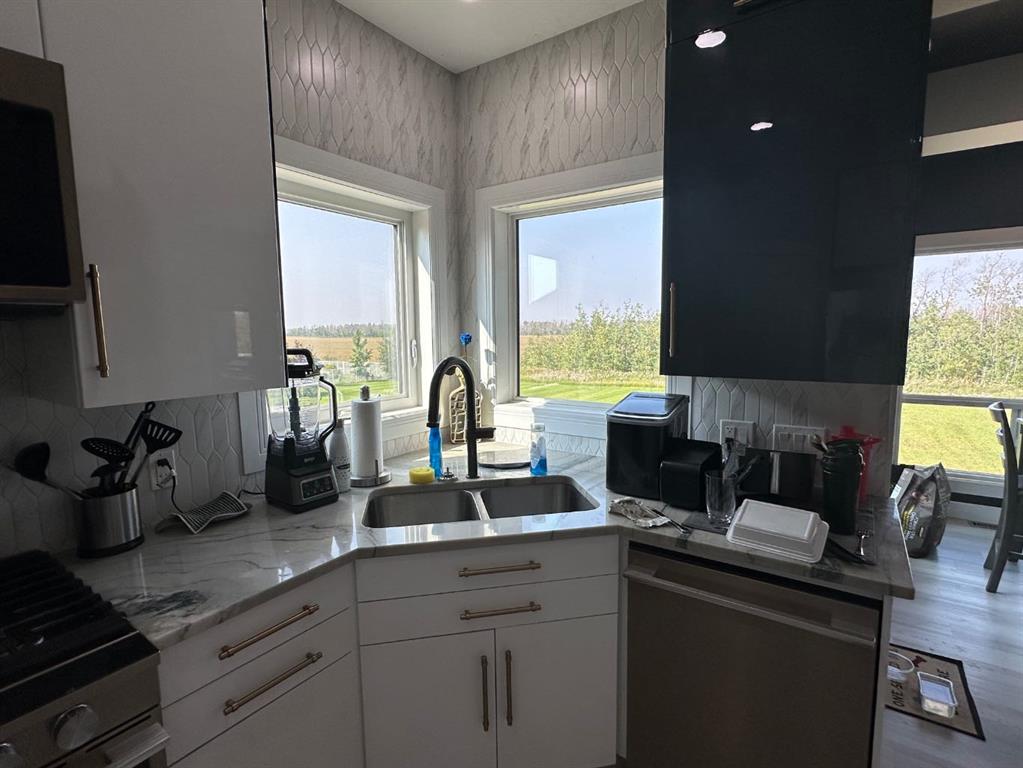 This luxury home is located in the prestigious neighborhood of CARRIAGE LANE ESTATES, only a five-minute drive from the city of Grande Prairie. It features a total of 6 bedrooms, an office, and 3.5 bathrooms, blending high-end finishes with spacious living areas. The main level features a large gourmet kitchen with stainless steel appliances, a bright living room with a fireplace, a two-piece bathroom, and a private office near the front entrance of the home. The second level includes a bonus room and a bedroom. The top level features a convenient laundry room, 3 spacious bedrooms, including a primary suite with a fireplace, private balcony, and a spa-like en suite bathroom with dual sinks, a separate shower, and an entirely separate room with a stand-alone soaker tub. The fully finished BASEMENT SUITE includes two bedrooms, a full kitchen, a bathroom, a separate laundry, and a private patio with its own entrance. This home is perfect for families seeking luxury, comfort, and the potential of rental income. Other features include central air conditioning, rough-in for in-floor heat, and a garage with two double overhead doors plus an additional single overhead door, which allows you to drive through the garage to the back of the property. This home backs out to trees and has no rear neighbours, providing plenty of privacy. It\'s a truly unique home!