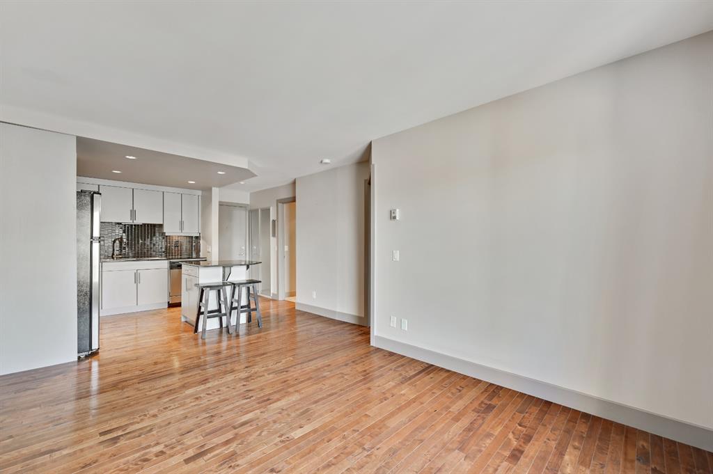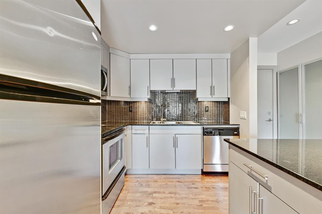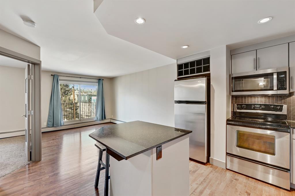Welcome to your new home! This stunning top-floor 1 bedroom, 1 bathroom condo is the perfect opportunity for first-time buyers or savvy investors alike. Designed with an open-concept layout, the home is finished with rich hardwood floors, granite countertops, a perfectly sized kitchen island, and sleek stainless steel appliances. Natural light pours through the large balcony doors, creating a bright and inviting living space; ideal for enjoying those sunny summer days. The spacious primary bedroom offers plenty of comfort, while the 4-piece bathroom showcases a fully tiled bathtub. For added convenience, the unit includes in-suite laundry with a stackable washer and dryer. An assigned parking stall is also included. Perfectly located just minutes from downtown Calgary, the Bow River pathways, and some of the city’s best restaurants, shopping, and amenities, this home combines modern comfort with unmatched urban convenience.