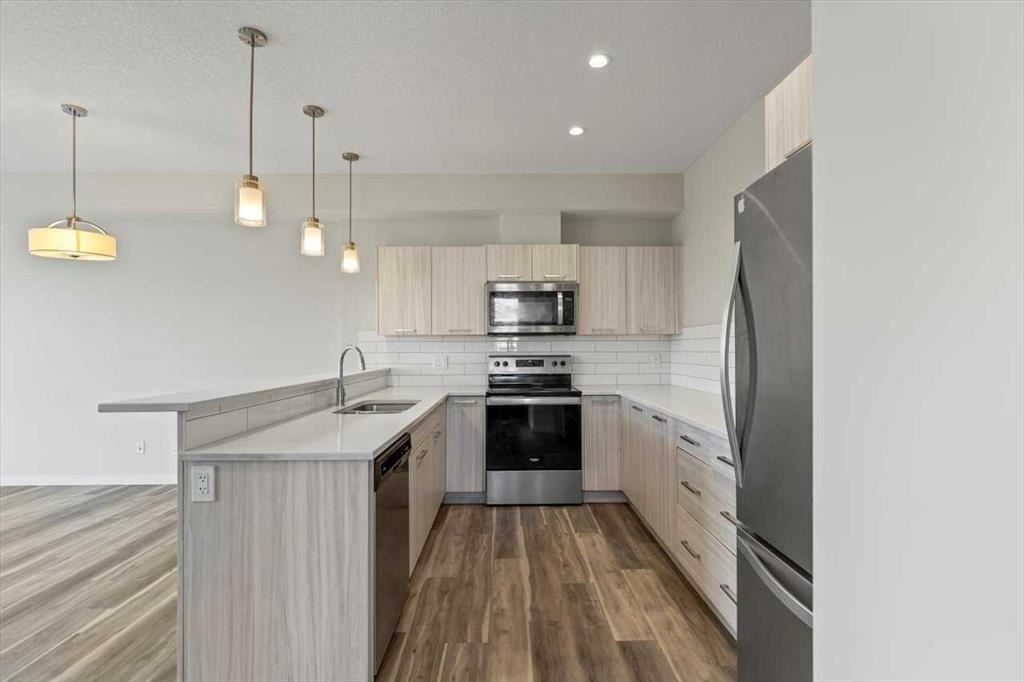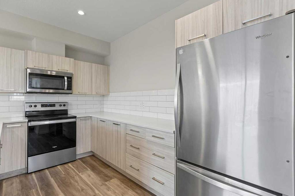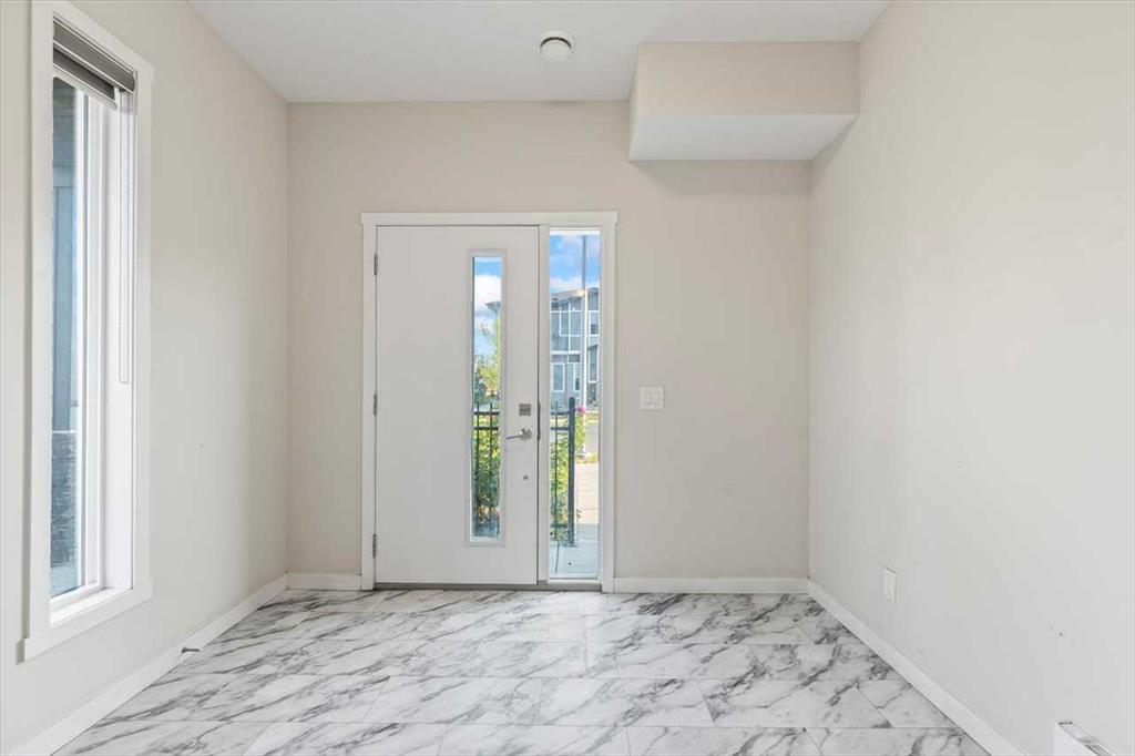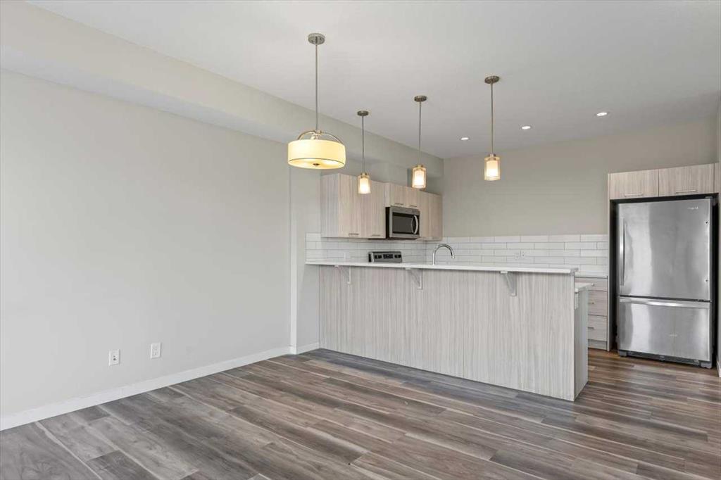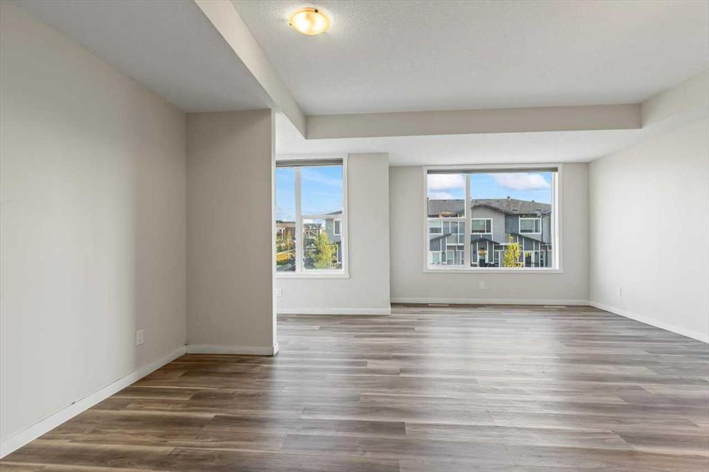End Unit Townhome | Single Attached Garage + Full Driveway | 3-Storey | 2 Bedrooms | 2.5 Bathrooms | Upper Level Laundry | 1,534 SqFt | Open Floor Plan | Quartz Countertops | Stainless Steel Kitchen Appliances | Breakfast Bar | Ample Cabinet Storage | Bright Natural Light | Large Windows | High Ceilings | Sizeable Bedrooms | Incredible Location | Close to All Amenities | Near Saddlestone Pond & Walking Path | Minutes to CBE Hugh A Bennet School | Great Transit Access. Welcome to this stunning end unit 3-storey townhome with an open floor plan complimenting it\'s large living space. Step up to a gorgeous exterior with a private concrete patio great for outdoor living space. The main level opens to a foyer with a hall closet great for an organized area. This level connects you to the single attached garage which holds the utility room. Head upstairs to the 2nd level which holds your main living space. The flow throughout the open floor plan is bright and welcoming with large windows and high ceilings. The kitchen is outfitted with ample cabinet and drawer storage, stainless steel appliances, quartz countertops and a double basin sink. The raised breakfast bar with barstool seating space is perfect for small meals or socializing while you cook. The dining area has a nook which provides a dedicated space for a table or with the open floor plan- choose your own! The living room is south facing with large windows. This level is complete with a 2pc bath. The uppermost level holds 2 sizeable bedrooms, 2 bathrooms and your laundry. The primary bedroom is paired with a walk-in closet and private 3pc ensuite bath. Bedroom 2 is a great size! The 4pc bath on this upper level has a deep tub/shower combo and single vanity with storage below. The stacked washer/dryer set is tucked into a hall closet to not take away from any of your living space. This home is located to perfection! Steps from your home is the saddlelake pond with a walking path. The CBE Hugh A Bennet School is nearby and there\'s great transit access. Hurry and book a showing at this incredible home today!