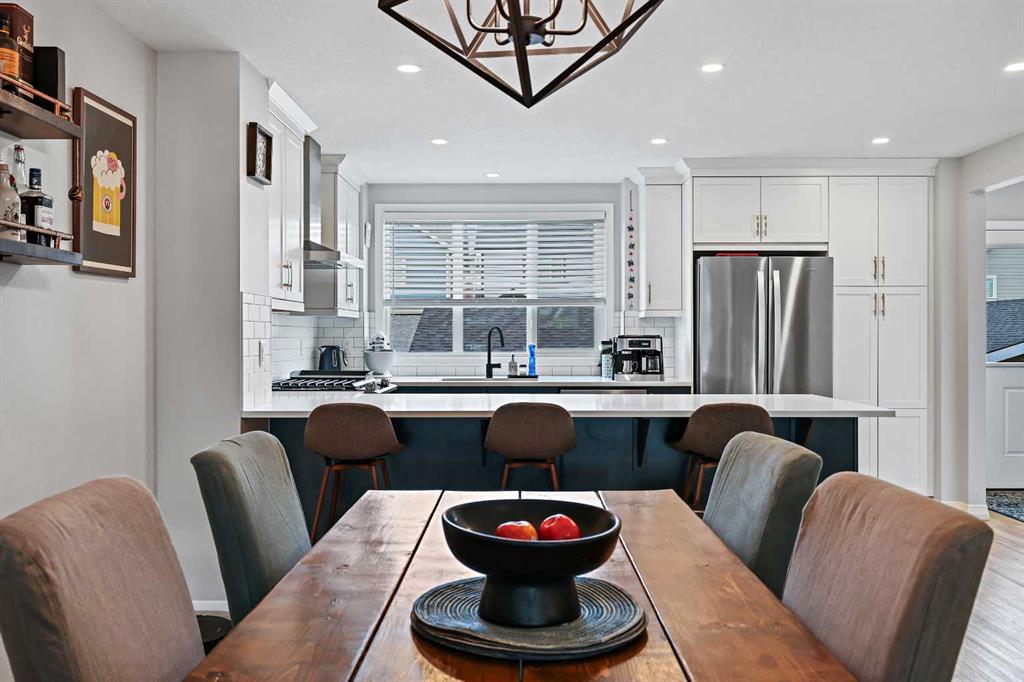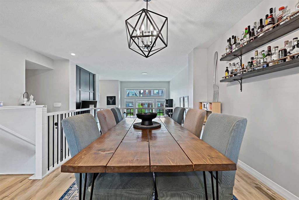 Welcome to The Sonata – one of the most highly sought-after and thoughtfully designed floorplans by Jayman BUILT, located in the vibrant and nearly sold-out Lake Community of Mahogany. Overflowing with charm, upgrades, and a true sense of connection, this 2-storey gem is more than just a home—it’s a lifestyle. Right from the front yard, you’re welcomed by a delightful built-in book library, inviting neighbours to “take a book, leave a book.” This charming feature not only adds character but brings the community together in the most heartwarming way. Step inside to discover the elevated Craftsman-style fit and finish Jayman is known for, with soaring ceilings and an airy, open-concept layout. The kitchen and dining area overlook the sun-drenched living room, creating a dynamic split-level space that families have adored for years. The living room features a stunning 11\'9\" ceiling, oversized windows, a media feature wall, and upgraded wrought iron spindle railing that ties the space together with timeless elegance. The chef-inspired kitchen is a dream come true with satin white upper cabinets and starless blue lowers, all topped with Polaire quartz countertops with eased edge detailing. You’ll love the slide-in gas Whirlpool range, designer hood fan, Arctic White subway tile backsplash, and Silgranite undermount sink. Built-in storage, ceiling-height cabinetry, mixed metallic hardware, and matte black fixtures finish the space with elevated design flair. Durable luxury vinyl plank flooring flows throughout, and a designer powder room adds a touch of class to the main floor. Upstairs, you’ll find three beautifully designed bedrooms and two full bathrooms, including a primary suite with a generous walk-in closet and a spa-like ensuite featuring a large walk-in oversized shower. All bathrooms boast beautiful countertops, designer luxury vinyl tile, and fixtures that match the upscale aesthetic of the main level. Additional conveniences include second-floor laundry and large windows that flood the upper floor with natural light. Step outside to your sunny deck and manageable yard, perfect for relaxing or hosting guests. A double oversized detached garage, central A/C, and energy-efficient features like triple pane windows, solar panels, tankless hot water, HRV system, EV-ready in garage, and smart home technology complete the package. Located in the award-winning lake community of Mahogany, residents enjoy year-round lake access—from sunny beach days in the summer to skating on the lake in the winter. Steps from restaurants, shops, parks, and pathways with quick access to Stoney Trail, 52nd Avenue, South Health Campus, and the dynamic Seton Urban District. Whether you\'re starting a new chapter or moving up, The Sonata offers the perfect harmony of comfort, community, and modern design. Don\'t miss your chance to call this special home yours—book your showing today!