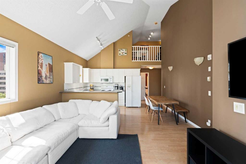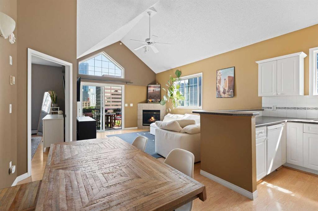 LUXURY TOP-FLOOR LOFT WITH ONE OF CALGARY’S BEST VIEWS! This PENTHOUSE-STYLE CORNER UNIT in Polo Terrace offers SOARING VAULTED CEILINGS, a PANORAMIC VIEW OF THE CALGARY TOWER, and a versatile layout perfect for professionals, couples, or small families. With 1,080 SQ FT of open-concept living, this rare 2-BEDROOM + 2 BATHROOM + LOFT gem is the ideal blend of lifestyle and location in the heart of the Beltline. The spacious living room features a cozy gas fireplace, dramatic vaulted ceilings, and direct access to your private balcony with jaw-dropping city views. The kitchen is modern and functional, with some updated appliances, generous counter space, and a layout that’s great for cooking or entertaining. Upstairs, the loft adds bonus flexibility, perfect for a home office, fitness zone, or creative studio. The king-sized primary suite includes a walk-through closet and private ensuite, while the second bedroom and full bath are ideal for guests or roommates. Enjoy the convenience of in-suite laundry with a storage room, and an additional under-stair storage area. You’ll also love the underground titled parking and optional storage rental ($30/month). Step outside to the best of urban living, just blocks from 1st Street, 17th Ave, the Saddledome, Lindsay Park, Calgary’s Memorial Library, the MNP Centre, dog parks, daycare and more. This is a walker\'s paradise in a vibrant and connected building. Condo fees include heat, water, sewer, garbage, insurance, professional management, and reserve fund contributions. Pet-friendly with board approval. Whether you\'re upsizing, downsizing, or investing, this iconic Beltline loft is the lifestyle move you’ve been waiting for.