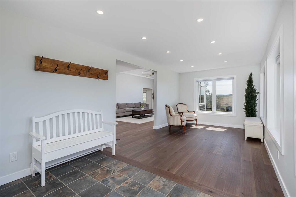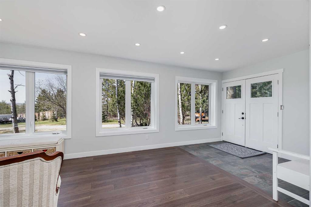 Welcome to your private slice of heaven in De Winton. This beautifully renovated 5-bedroom, 2.5-bathroom home with over 3100 square feet of developed living space is nestled on 2 acres in a quiet cul-de-sac. With unobstructed mountain views, total privacy and just a short drive from Calgary, this stunning property offers the best of rural serenity with urban convenience. Curb appeal is undeniable, featuring professional landscaping, Hardie Board siding, new shingles, upgraded soffits and eaves, and meticulously designed pavers all framed by a gated and fully fenced perimeter. Over $100,000 in landscaping, new decks and patios, and thoughtful exterior lighting make this home shine from every angle. Step inside to a spacious foyer and sitting area where engineered hardwood flooring immediately sets a tone of quality. From there, the home opens into a massive living room with panoramic windows showcasing the rolling countryside and distant mountain peaks. The space flows effortlessly into the fully updated kitchen, featuring ceiling-height maple cabinetry, quartz counters, and sleek modern lighting. The adjoining dining area leads directly onto a large back deck, perfect for morning coffee or evening gatherings. The mudroom offers custom cabinetry designed to keep boots, coats, and everyday essentials organized. From here, you have access to both the heated, insulated triple-car garage and a large side deck, making it a perfect entry point for busy households and outdoor enjoyment. The entire home has been transformed with all-new windows, interior doors, and light fixtures, offering a fresh and contemporary feel throughout. The upper levels are split for privacy and function. One level up features a large bedroom, while the next includes the master, an expansive bedroom with beautiful views, plus another well sized bedroom and a full bath. One level below the main is a cozy, private bedroom with a large closet, ideal for kids, guests or a home office. The walkout basement is made for entertaining, with a spacious rec room that opens onto a renovated patio. Down here, you’ll also find a fifth bedroom, laundry area, and an oversized crawl space perfect for storage. Outside, enjoy two massive decks, a gas outlet for your BBQ, a greenhouse, three large storage sheds, and a charming gazebo, all thoughtfully arranged for both beauty and utility. Water is supplied through a Co-Op system, so no need to maintain your own well. This home offers privacy, peace, and pride of ownership at every turn, with close proximity to schools, shopping, major traffic routes, and only minutes from Strathcona-Tweedsmuir School. You truly have to experience it to believe it. Book your private viewing today! Please do not enter yard without an appointment.
