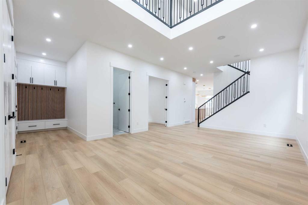 Step into a grand open-to-below foyer and be impressed by the elegant finishes, including luxury vinyl plank flooring, 8-foot doors on the main floor, upgraded tiles, and a beautifully designed media niche with a feature wall fireplace. The main floor features a versatile office/bedroom alongside a full bathroom with a standing shower, perfect for guests or multi-generational living.