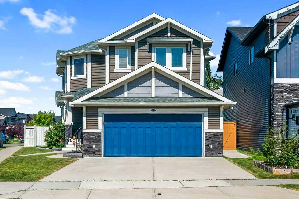 The main floor features a 2-piece bathroom, a large front closet, and a massive mudroom with access to the oversized heated double attached garage. A walk-through pantry connects the mudroom to the gourmet kitchen, which boasts rich cabinetry, granite countertops, a stylish new backsplash, gas stove, stainless steel appliances, and a large island with a double sink and seating—perfect for cooking and entertaining. The bright dining area easily accommodates an 8-person table and leads out to a low-maintenance composite deck with an automatic awning, ideal for summer gatherings. The living room offers soaring knockdown ceilings, a cozy gas fireplace, pot lights, and a beautiful chandelier. Upstairs, you’ll find plush carpet throughout, a generous master retreat with a stone accent wall, a spa-like 5-piece ensuite (double vanity, soaker tub, walk-in shower, and private water closet), plus a large walk-in closet. Two additional spacious bedrooms, a 4-piece bathroom, a large laundry room with linen storage, and a bright bonus room complete the upper level. The fully finished basement provides even more living space, with a large bedroom and closet, a family room with wet bar (perfect for movie nights), a 4-piece bathroom with in-floor heating, and ample storage. Located just minutes from shopping, schools, and quick access to Deerfoot Trail—this home combines elegance, comfort, and convenience in one of Airdrie’s best neighborhoods. Recent updates include: new hot water tank (2025), brand-new microwave, and all new fixtures.