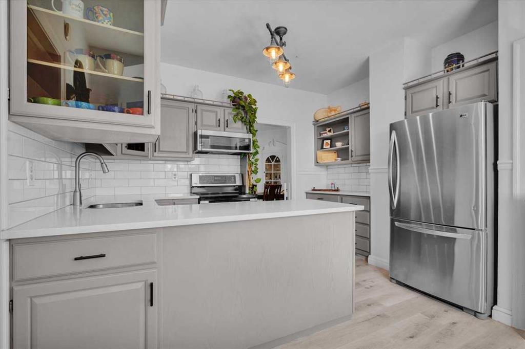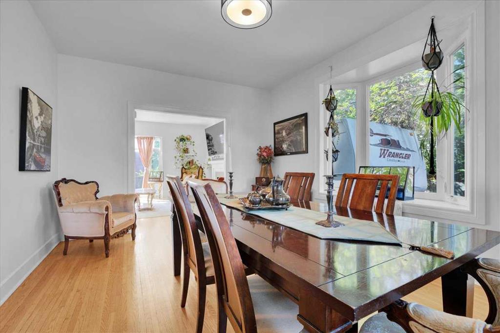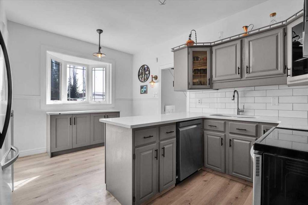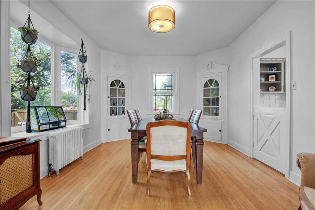 Once upon a time in 1940 this property was an Estate Ranch Home. City of Edmonton has grown around this charming character home! 4-LARGE BDRMS | 2-FULL BATH | ORIG. HARDWOOD FLOORS | 10ft CEILINGS | TRIPLE-PANE WINDOWS |SPACIOUS DINING ROOM & VINTAGE BUILT-IN CABINETRY | DUTCH & FRENCH DOORS | HEATED DOUBLE GARAGE |PIE-LOT. With over 1800 + sq ft. this home over the years has been loved and very well-maintained. The entrance has vinyl flooring extending into the basement. Hardwood flooring on main and upper level as well as the staircase. Beautiful cabinetry in the kitchen, quartz countertops and stainless-steel appliances. Dutch doors to and from the kitchen. A spacious dining room for hosting family and friends or your favourite Realtors for all occasions! Relax or entertain in the living room. Large windows with beaming sunlight or cozy up next to the fireplace. The upper-level bathroom has been renovated STUNNING! Large bedrooms with walk-in closets. The Primary room is massive with a walk-in closet and patio doors. This ranch home is very spacious with the large bedrooms unlike most homes build in this era. The lower level has an endless amount of storage. Large laundry room. BRAND NEW BOILER SYSTEM INSTALLED in August 2025 ($20K). Another large bedroom with 3-piece bathroom and a cozy flex or den room. A LARGE HEATED GARAGE with a driveway that can accommodate many visitors. Enjoy a garden Party with this enormous backyard on the deck off to the side or sit under the Pergola. Summer fun or Winter Wonderland! RV Parking, if needed. This pie-shaped offers you loads of space for flower beds or vegetable gardens with a shed for garden tools. It is an incredibly unique home with lots of history and character. The original entrance to the home faces the backyard. Close to all amenities and easy access in and out of the community. YOUR NEW HOME!