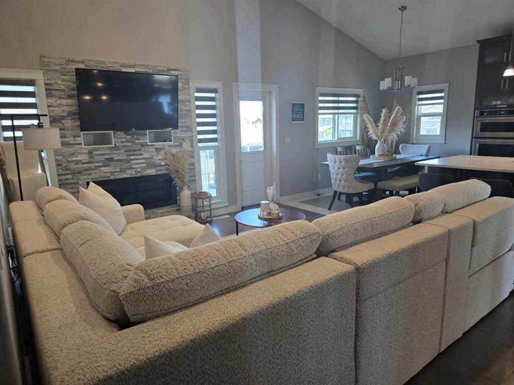 Step inside this over 3,000 sq ft home to discover a beautifully designed space with high-end, custom finishes throughout. The open-concept layout and vaulted ceilings create an expansive, welcoming atmosphere. The chef\'s dream kitchen is the heart of the home, featuring elegant quartz countertops, crown molding, and top-of-the-line appliances.
