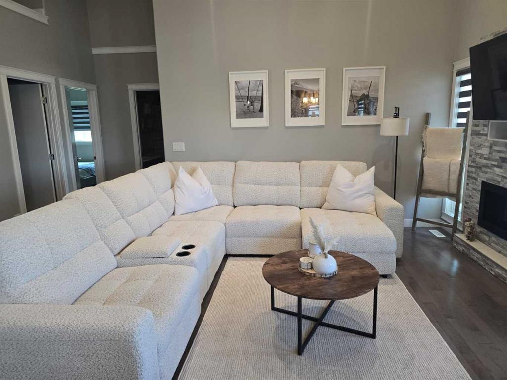Throughout the house, you\'ll find luxurious hardwood, tile, and laminate flooring—no carpet here! The living room is anchored by a stunning decorative gas fireplace, perfect for cozying up on a chilly evening. The main floor includes two spacious bedrooms and a full bathroom. The primary bedroom is a true sanctuary, complete with a walk-in closet and a lavish 5-piece ensuite featuring dual sinks, a jetted soaker tub, and a beautifully tiled standing shower.