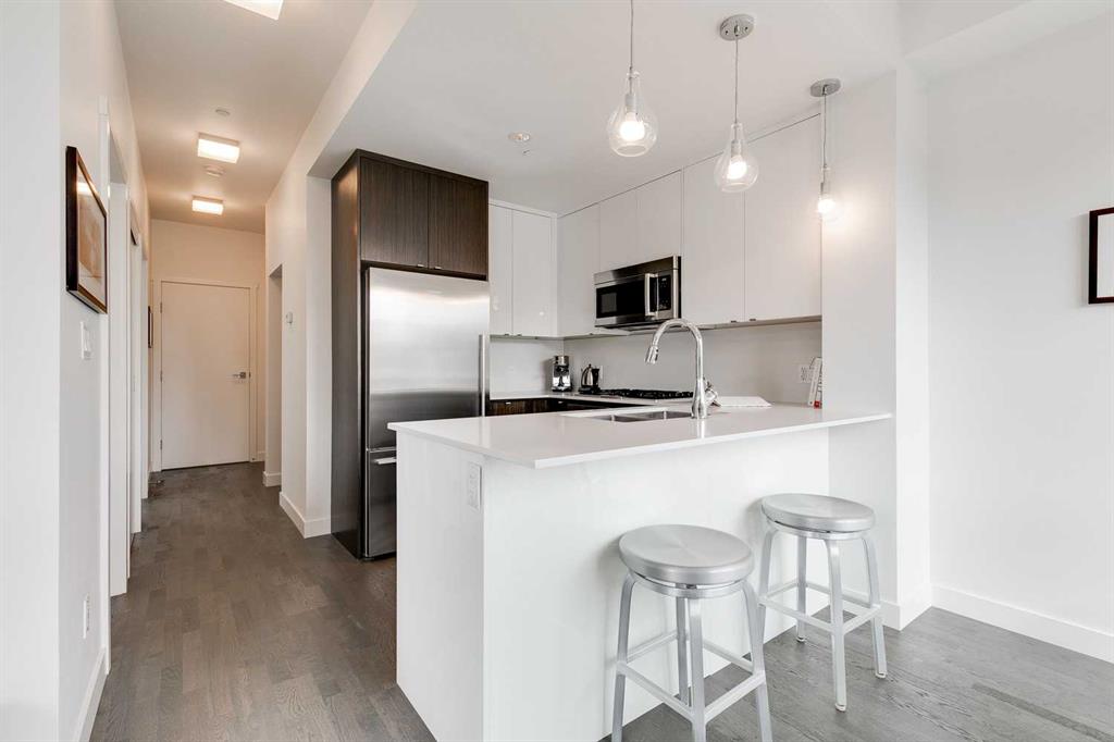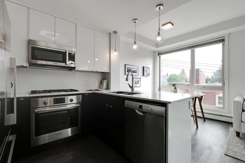 Welcome to this truly exceptional, immaculate & BRIGHT 1-bedroom PLUS DEN, CORNER UNIT, South & West facing in the fabulous walkable neighbourhood - Mission! Modern open-plan design, 9\' ceilings, SS appliances, quartz countertops & sleek cabinetry. Large windows flood the space with natural light. Enjoy your private balcony, perfect for relaxing or entertaining. Spacious bedroom, 4 piece bath & in-suite laundry. This building sets itself apart with exceptional Safety & NEW SECURITY SYSTEM that few condos can match. Video surveillance software, monitored parkade entrance with extra cameras, LED motion-sensor lighting throughout stairwells & parking (brighter, safer & energy-efficient) Strong proactive very well-managed condo board. Dedicated owners who take pride in maintaining & preserving their investment. Ample guest parking & PET FRIENDLY. This rare opportunity combines style, security, location & a wonderful warm & welcoming community of owners in one of Calgary’s most sought-after neighbourhoods. Step outside your door to cafés, boutiques, river pathways, MNP Sports Centre & downtown just a short stroll away. This is more then a condo - it’s a LIFESTYLE.
