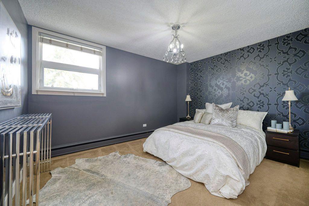 Inside: 2 bedrooms, 1 full bath, and a bright open layout. Fresh paint throughout (including cabinetry) in a modern palette, with designer wallpaper and moody walls in the primary bedroom. The kitchen features stainless steel appliances, wood cabinetry, and ample prep space. Convenience in this condo with in-suite laundry plus optional shared laundry in the building.