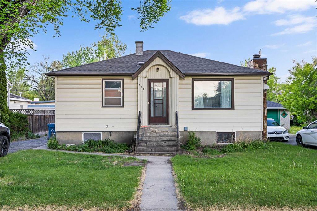 50 Ft x 120 Ft Property | 5,995 SqFt Lot | Incredible Location | Steps Away from Queen\'s Park Greenspace & Walking Paths | South Backyard | Close to CBE James Fowler & Buchanan School | Bungalow | 3 Bedrooms | 2 Baths | Studio Basement Suite(illegal) | Massive Backyard | Double Detached Garage | Rear Lane | Front Driveway/Parking Pad | Close to All Transit | Quick Commute to Downtown. Welcome to 427 35 Avenue NW; a property with an incredible location of inner city NW Calgary surrounded by amenities in a family friendly neighbourhood. This 3 bed 2 bath bungalow has a studio basement suite(illegal) with a separate entry. The main level opens to the front living room which has a wood burning fireplace with a floor to ceiling stone accent wall behind. The main level kitchen has great cabinet storage and a dining nook. The 3 main level bedrooms are all a great size and share the main 4pc bath with a tub/shower combo. Downstairs, the studio basement suite(illegal) has a separate entry through the rear of the home. The studio basement kitchen has ample cabinet storage. The basement rec room is a studio layout where the rec room is the flex space for a bedroom/living space. The laundry for this home is located in the shared space in the basement. The utility room is accessible to both the main and basement levels. Outside, this home has a concrete patio, massive lawn space and detached double garage. The double detached garage has an extended front driveway that allows for additional parking. This home is steps away from 4 St NW and Centre St making it an easy commute to downtown. The neighbourhood has multiple transit points that head to all parts of the city too. Hurry and book a showing at this home today!