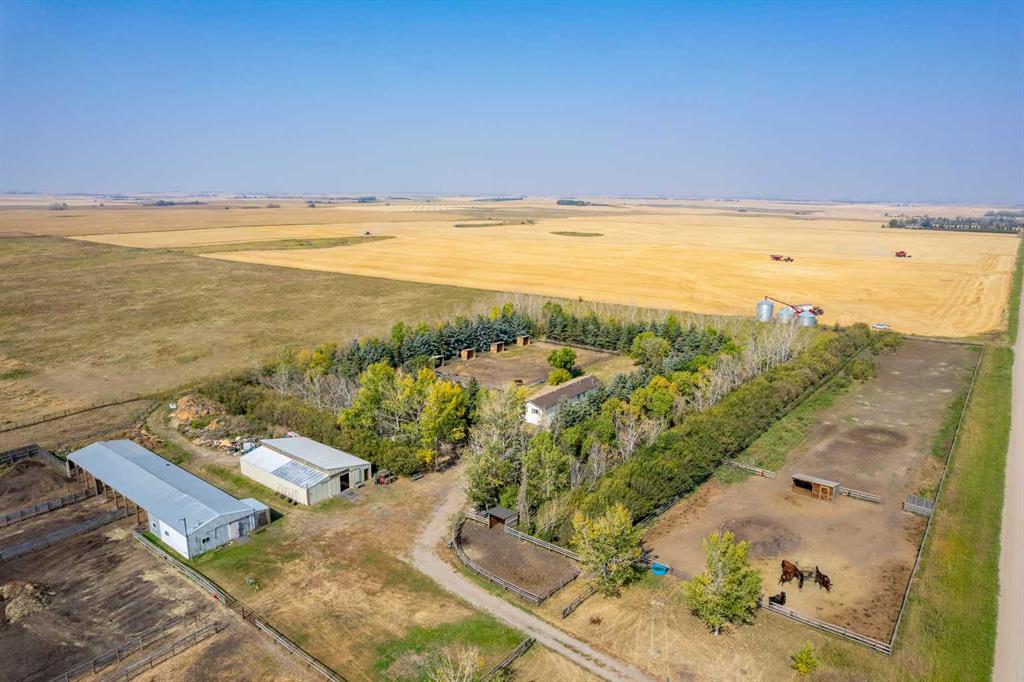 Incredible opportunity to own 120 ACRES of native pasture just 25 km east of CARSTAIRS! This beautiful property features a 1,500 sq ft modular home with 2 bedrooms (was 3 bedrooms + a Den, converted into 2 bedrooms so could have 4 bedrooms), 2 full bathrooms, drywall interior, and brand-new appliances (2024) & an OPEN CONCEPT LAYOUT. The home has been well maintained & could be Perfect for multi-generational living or future development of a 2nd/new home. Equestrian-ready with a 4-year-old- 8-stall barn (3 double, 2 single stalls) and foaling cameras. Includes a heated 36\' x 30\' WORKSHOP/GARAGE, 5 fenced paddocks (4 with shelters), 2 auto waterers, 96’ x 160’ outdoor riding arena (convertible into 4 paddocks), and a 96’ long shelter. There’s even a full 1-mile dirt track for training or riding. The land is serviced by a strong well, new pressure tank (2023), and a deep SPRING-FED DUGOUT & a great MATURE TREE ROW surrounding the yard site. Conveniently located approx. 1 hour to Calgary or Red Deer. This is a turn-key rural property you\'ve been waiting for!