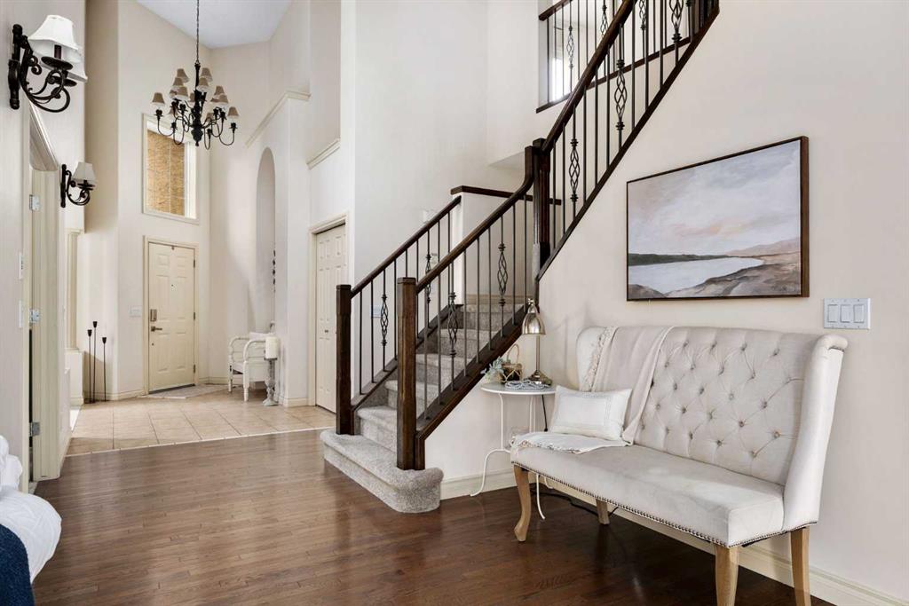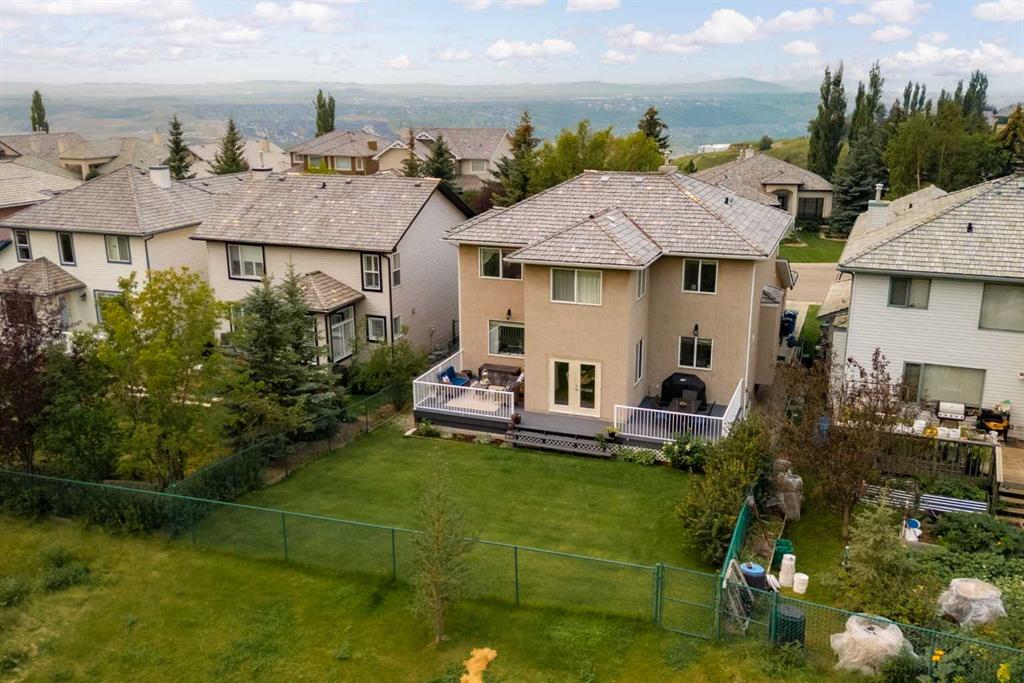The fully finished basement offers endless possibilities with a refreshment bar, dedicated fitness room, and space for movie nights, games, or guests. Additional features include built-in speakers, underground irrigation, cedar shake roof (recently maintained with 5-year warranty), oversized finished garage with epoxy floors, skylight, sink and floor drain. The house is complemented with an expansive multi-zone back deck that spans the full width of the home, thoughtfully divided into two distinct spaces—ideal for both entertaining and relaxing. One side is perfect for hosting summer barbecues or outdoor dining, while the other offers a more private retreat for morning coffee, evening drinks, or quiet lounging. Backing onto wide open green space, this deck offers both functionality and serenity. Play a round of golf at the Links of Gleneagles just up the street or enjoy dinner at the Eagle\'s Nest lounge. School buses and COLT, Cochrane’s own on-demand transit stop nearby. Quick access to the city, with only a 30-minute commute to downtown Calgary.