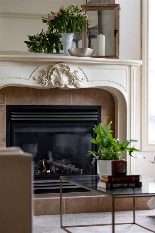 Upstairs, you’ll find all-new carpet, beautiful mountain views, and a spacious layout ideal for families. The primary retreat is a true standout, accessed through a charming sitting room with a fireplace and built-ins—an ideal spot for reading or winding down. The suite features a king-sized layout, walk-in closet, and a spa-inspired ensuite with a soaker tub and separate shower. Two additional bedrooms, a full bathroom, and convenient upper-level laundry round out the second floor.
