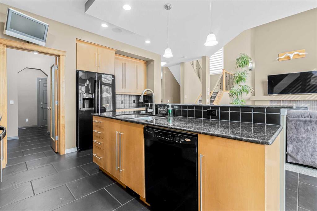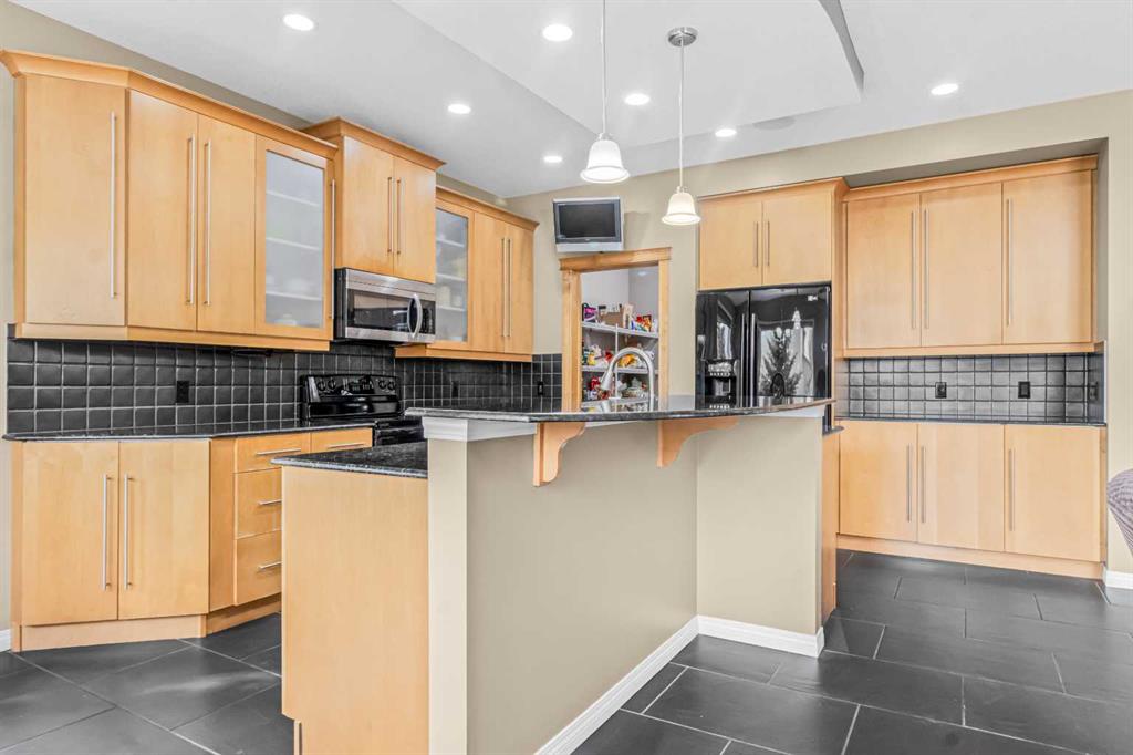 From the extraordinary curb appeal with exposed aggregate driveway, triple car garage, and welcoming front porch, to the mature landscaping, this home checks all the boxes. Inside, you’re greeted by a bright and spacious front room with an abundance of natural light. The main floor great room features a chef-inspired kitchen with granite countertops, a large island, upgraded appliances, and a massive walk-through pantry connected to the mudroom/laundry area. The open living room with gas fireplace and dining area flows beautifully to the large deck and private backyard—complete with a matching storage shed (siding & shingles same as the home).