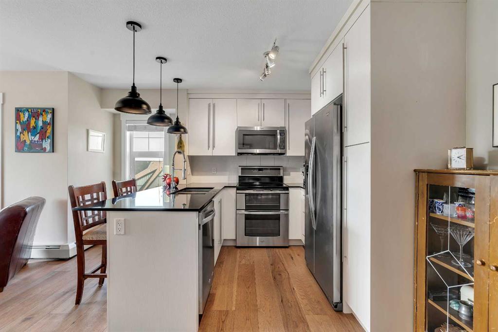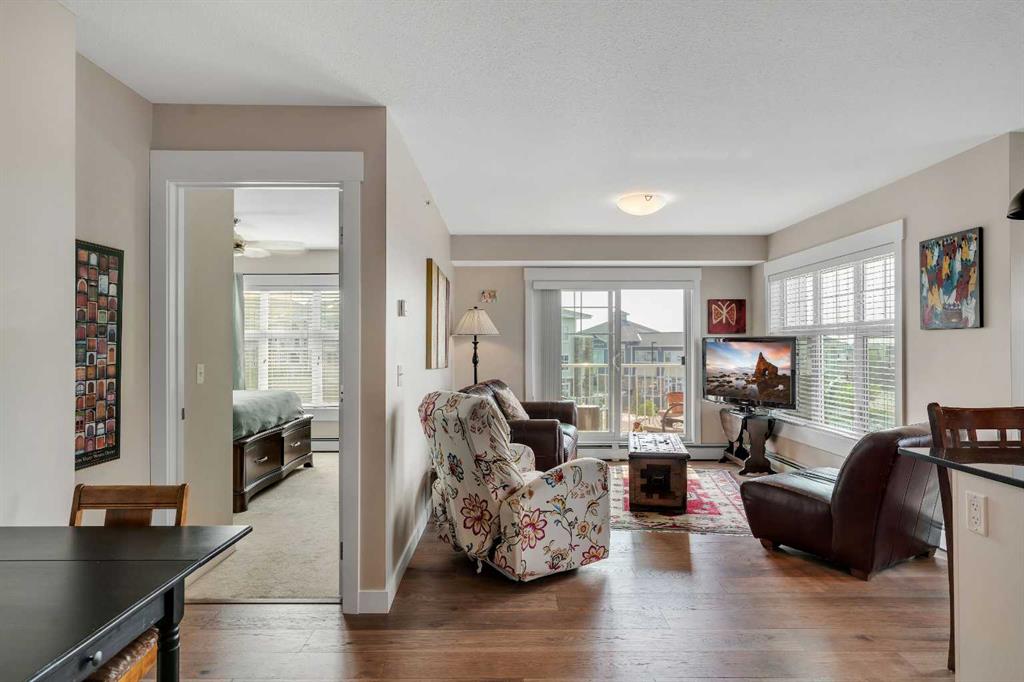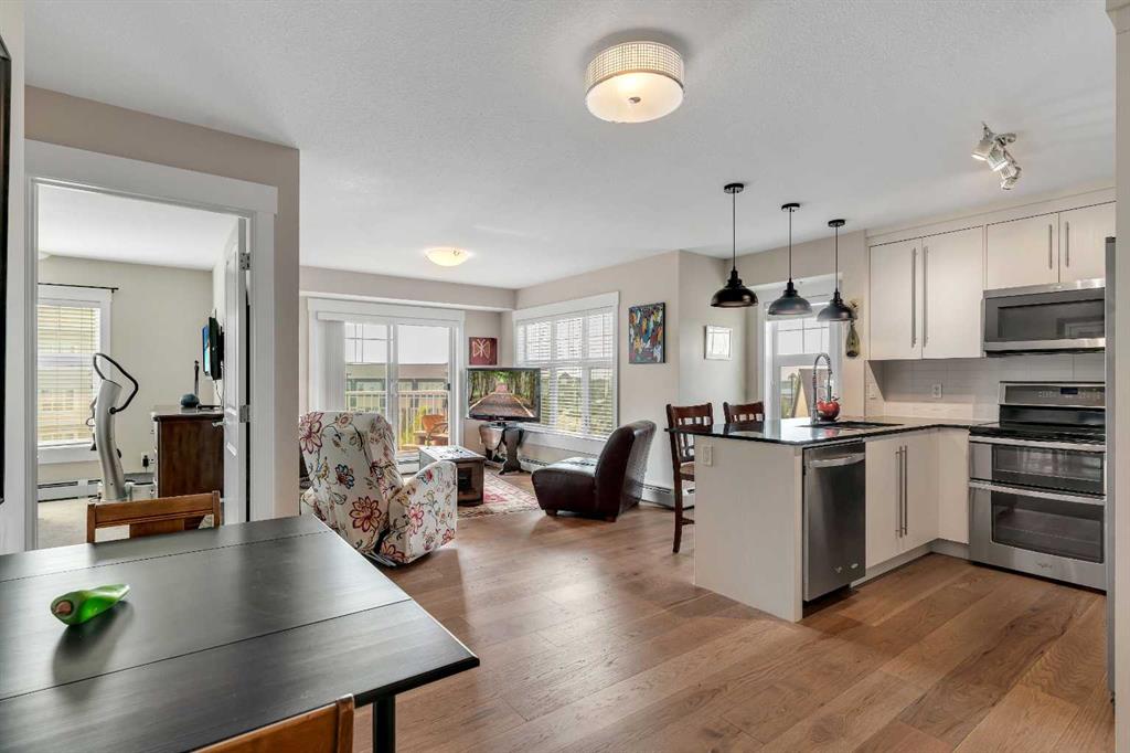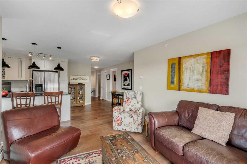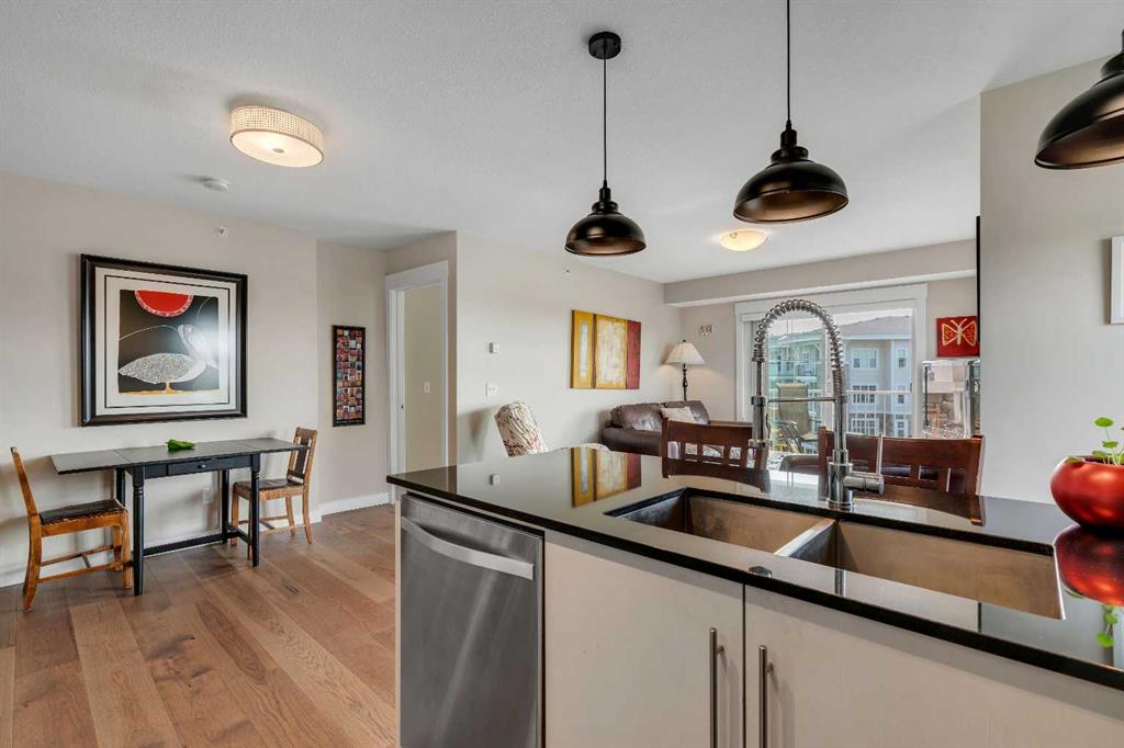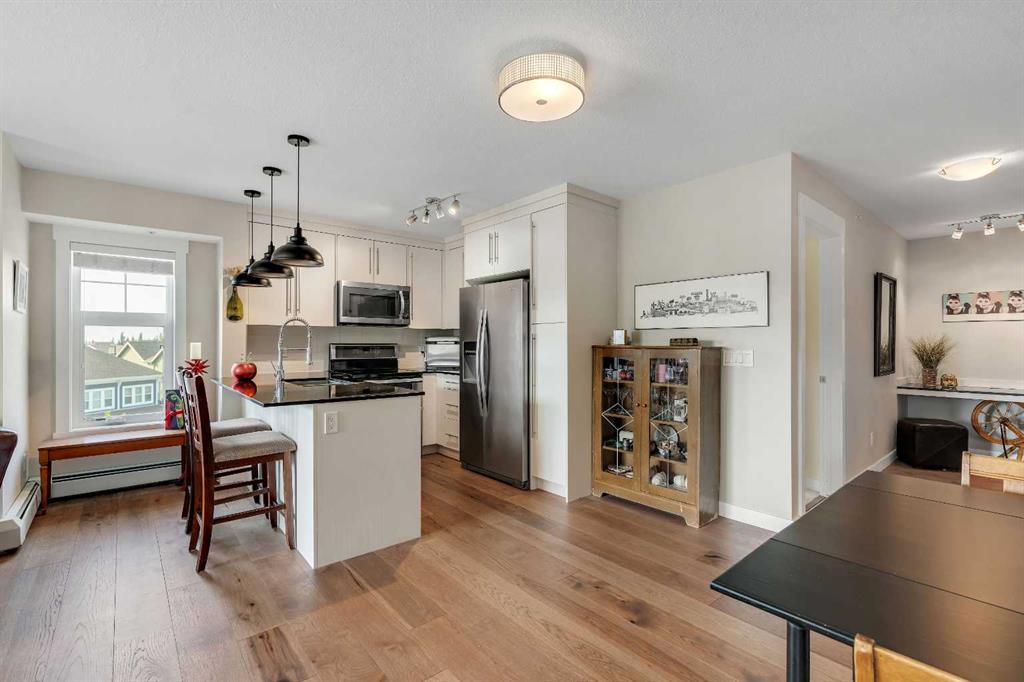 elcome to 1401, 11 Mahogany Row SE — a stunning top-floor corner unit offering the perfect blend of style, comfort, and convenience in one of Calgary’s most desirable lake communities. This is a rare opportunity to own a 2 bedroom, 2 bathroom condo in the heart of Mahogany, just steps from the lake, walking paths, restaurants, and all the vibrant amenities the community has to offer. Step inside and be greeted by a bright and open-concept layout featuring sun-filled south and west exposure, flooding the space with natural light and offering distant mountain views. The living, dining, and kitchen areas flow seamlessly, creating a spacious environment ideal for both relaxing and entertaining. Enjoy cooking in the upgraded kitchen complete with a premium appliance package, including a fridge with water & ice maker and a sleek induction stove. Thoughtful updates such as new engineered hardwood flooring, plush carpet in the bedrooms, and modern light fixtures add to the home’s fresh feel. Both bedrooms are generously sized, with the primary suite featuring a private 4-piece ensuite and walk through closet. The second bedroom is ideal for guests, family, or a roommate setup, with a full bathroom nearby. Additional features include underground heated parking, separate storage, and access to Mahogany’s unmatched amenities — including the private lake, and an array of nearby shops, cafés, and dining options.