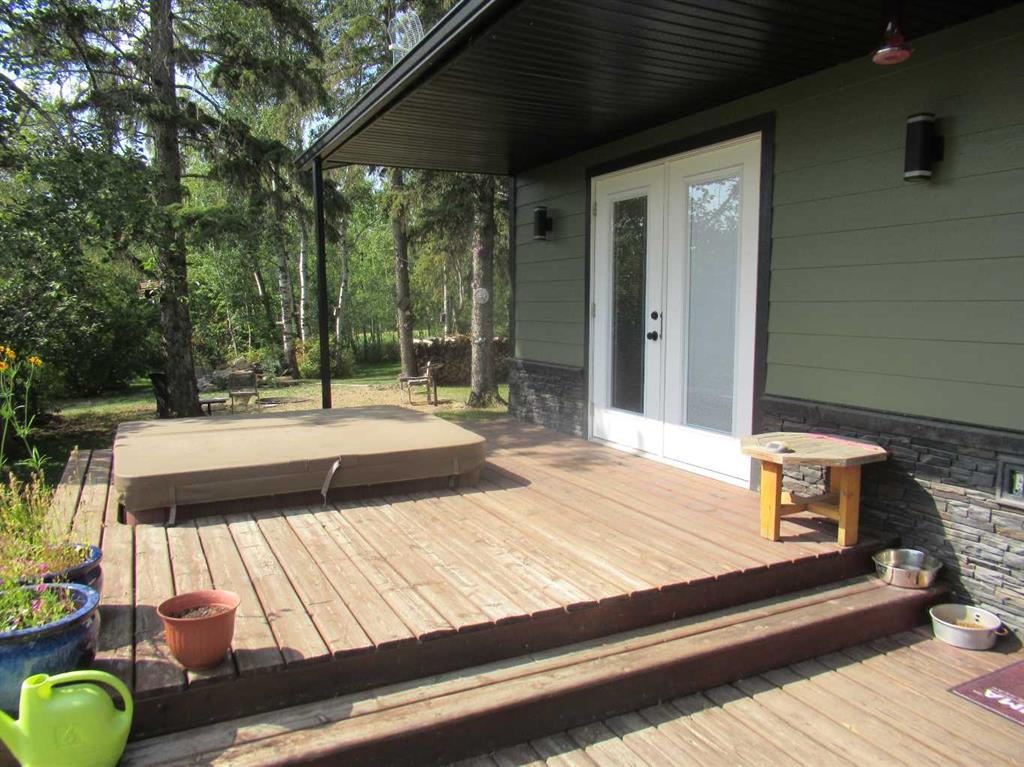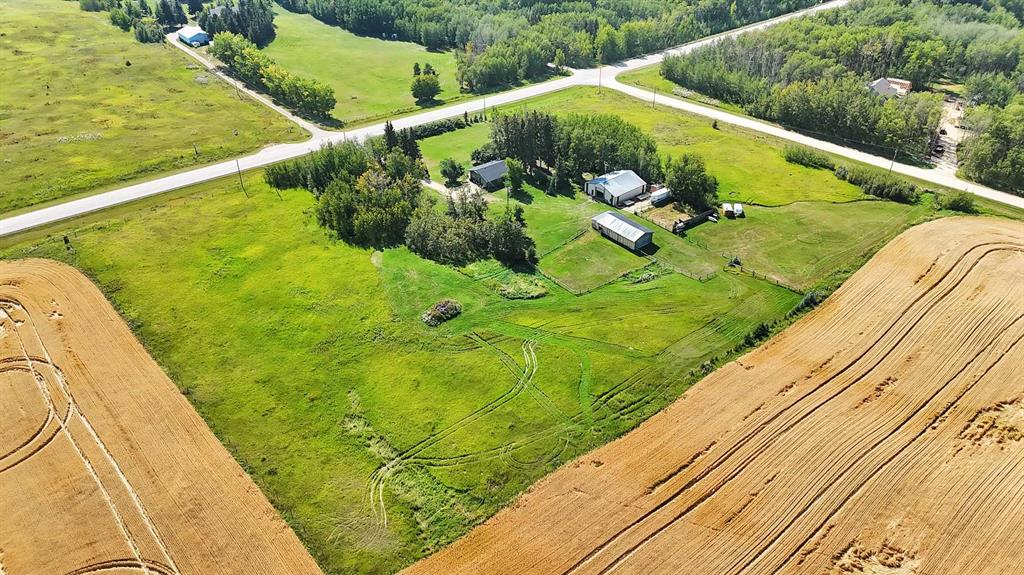 This beautiful \'one of a kind\' opportunity is 9 acres close to the north shore of Sylvan Lake. Two highlights of this versatile parcel are the superb view of the lake, and the proximity to access and boat launch facilities into the lake, a city block away at Palm\'s Bay, and the other a mile away at Sunbreaker Cove. The attractive 2 bedroom, and bath and a half bungalow features an open concept kitchen, living, family room area with patio doors opening to a tiered deck with a hot tub, and a superb view of the lake and surrounding hills. Recent renovations include new windows and doors, \'Hardie\'-board fire and hail resistant siding, \'lifetime shingles\', and all vinyl plank flooring. Other features include stainless steel appliances, glass-front pantry, quartz counter tops and built-in microwave. The plumbing is upgraded and the hot-water heating system serviced. The price include a CB Tower, satellite dish and wiring for internet. The Home is sheltered by two natural wild areas with dozens of saskatoon, choke-cherry, mountain ash, raspberry and rose bushes. Near the home is a fire-pit area, horse shoe pit, and fountain with a gold fish pond. Other highlights include a 50\'x44\' shop with cathedral ceiling, LED lighting, in-floor heating, work benches, shop hoist, compressor, room for 8 vehicles, and a \'man-cave\', hidden from the highway by natural shelter-belt. A 57\'x25\' horse barn is also hidden from the highway, complete with tack room, turn-out yards and deep grass pastures. Both shop and barn have steel roofs. The north shore of Sylvan Lake is well known for it\'s Walleye & Whitefish fishing, not much more than a stone throw away from this special property that has many attractions. The seller\'s heated ice-fishing shack is included in the price, as well as the 60 inch Husqvarna riding mower. Sylvan Lake, Bentley, Eckville, Lacombe, a Blackfalds are all only minutes away, while the Edmonton International Airport is only an hour and a bit away.