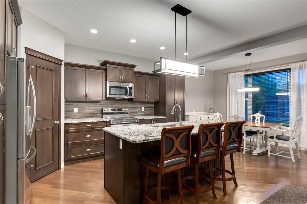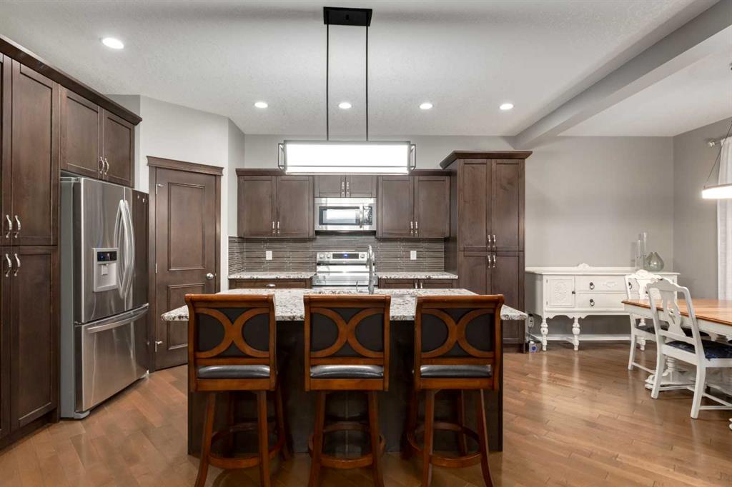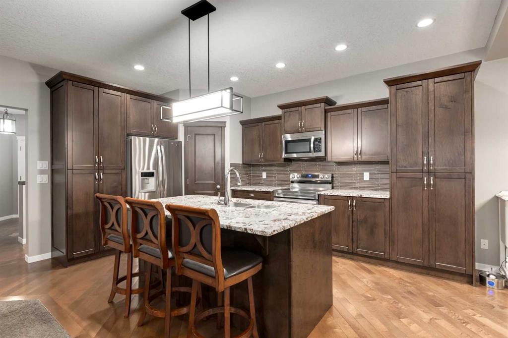 Incredible value in this beautifully upgraded home, perfectly situated on a quiet cul-de-sac in the heart of Auburn Bay! Located on a massive pie shaped lot with sunny southwest exposure and an oversized double garage, this property offers over 3,000 SF of developed living space; all within walking distance to public and Catholic elementary schools. Step inside and be welcomed by rich hardwood floors, a stunning chef’s kitchen featuring granite countertops, stainless steel appliances, a large corner pantry, and an island with eating bar. The bright dining nook opens to the huge backyard and deck, ideal for family gatherings or soaking in the sun. The spacious great room is anchored by a cozy gas fireplace, while the adjacent den/flex room offers the perfect space for a home office or formal dining. Upstairs, you’ll find a large bonus room flooded with natural light and access to a private balcony. The primary suite is a showstopper, offering a walk in closet and a spa inspired 5 piece ensuite with dual sinks, extended glass shower, and a deep soaker tub. Two additional bedrooms, both with walk in closets, a full 4 piece bath, and a convenient upper floor laundry room complete the level. The professionally finished basement adds even more space with a generous recreational room showcasing new vinyl plank flooring, complete with a built in bar, a 4th bedroom, and a 3 piece bathroom; perfect for guests or teens. Located just minutes from Auburn Bay Lake, Seton shops, the South Health Campus, the YMCA, restaurants, theatre, and countless amenities, this home truly offers the best of lake community living with the space and location every family dreams of. Don’t miss this opportunity-check out the video in media and book your private showing today!