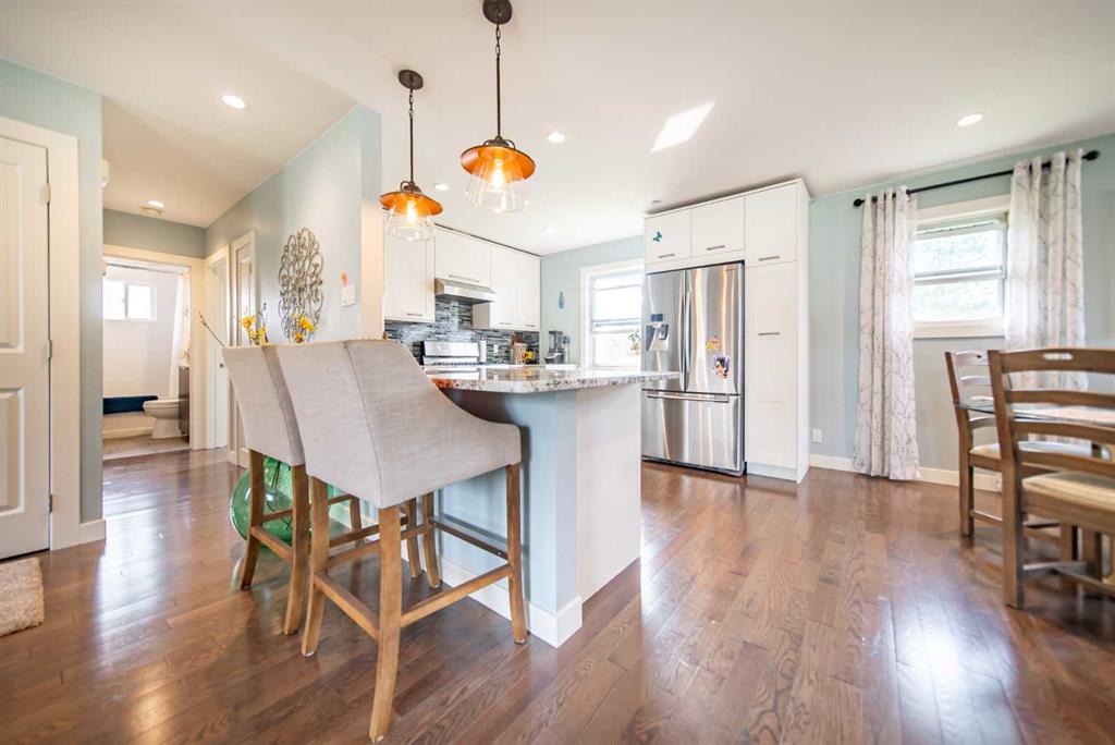 Welcome to this beautifully updated bungalow nestled in the heart of Glendale. The open layout and large windows fill the entire home with plenty of natural light. From the moment you step inside, to the time you leave, you are greeted by a warm and inviting atmosphere. The main floor features a large, fully renovated kitchen complete with sleek cabinetry, modern appliances, and a dining area ideal for quiet mornings or intimate evening dinners. The adjacent living room is spacious, anchored by a gas fireplace and a large front window that bathes the home in daylight. With two bedrooms up and two more downstairs, this home is perfectly suited for growing families, multigenerational living, or anyone in need of flexible space. The lower level is truly exceptional thanks to the oversized windows and wide-open layout. With a distinct, Zen-like ambiance, featuring an illegal suite (complete with fridge, stove, dishwasher and microwave) and a beautifully renovated bathroom with heated tile floor throughout the bathroom and kitchen. Rounding out the basement amenities, there is also a spacious laundry room with storage area for all the extra stuff. Featuring a separated side entrance, this space is ideal for renters, a nanny suite, growing children or extended family. Did we mention it is a short walk to the 45th Street LRT station? Pride of ownership is evident throughout the home. Each detail has been carefully considered, with thoughtful touches like oversized closets, heated bathroom floors on both levels and beautiful hardwood throughout the main floor, adding comfort and luxury to everyday living. Outside, the property truly shines. The huge backyard is a private oasis with mature trees, a fire pit, room for entertaining and plenty of space to putter, play or relax. In the evenings, enjoy spectacular, unobstructed views of the sky, it’s a rare sense of openness and calm you’ll be hard pressed to find so close to the city core. The oversized detached single garage adds even more value, offering front driveway access for your vehicle year-round or a handyman’s workshop for the puttering enthusiast. Glendale, known for its welcoming atmosphere and strong sense of community, offers the best of both worlds: a quiet, community focused neighbourhood and easy access to all the amenities you could ask for. It is 10 minutes to downtown, the westside farmer’s market, the new ring road takes you to the south end of the city in no time and quick access west of the city for day hikes and weekend mountain getaways. As well it is only steps from direct bus lines to the University of Calgary and Mount Royal University. This home is great for living in, renovating to your dream home or holding for future development. The surrounding community main streets are receiving an overhaul from the City of Calgary, bringing more walkable amenities and community feel to an already abundant area of town. This is more than just a home, it’s a lifestyle.