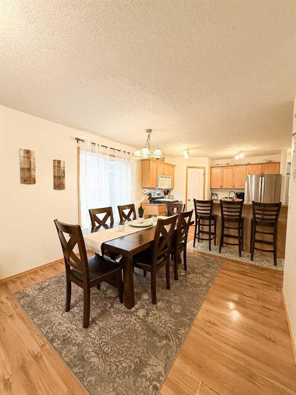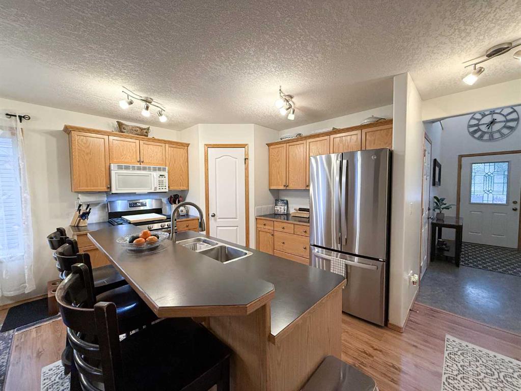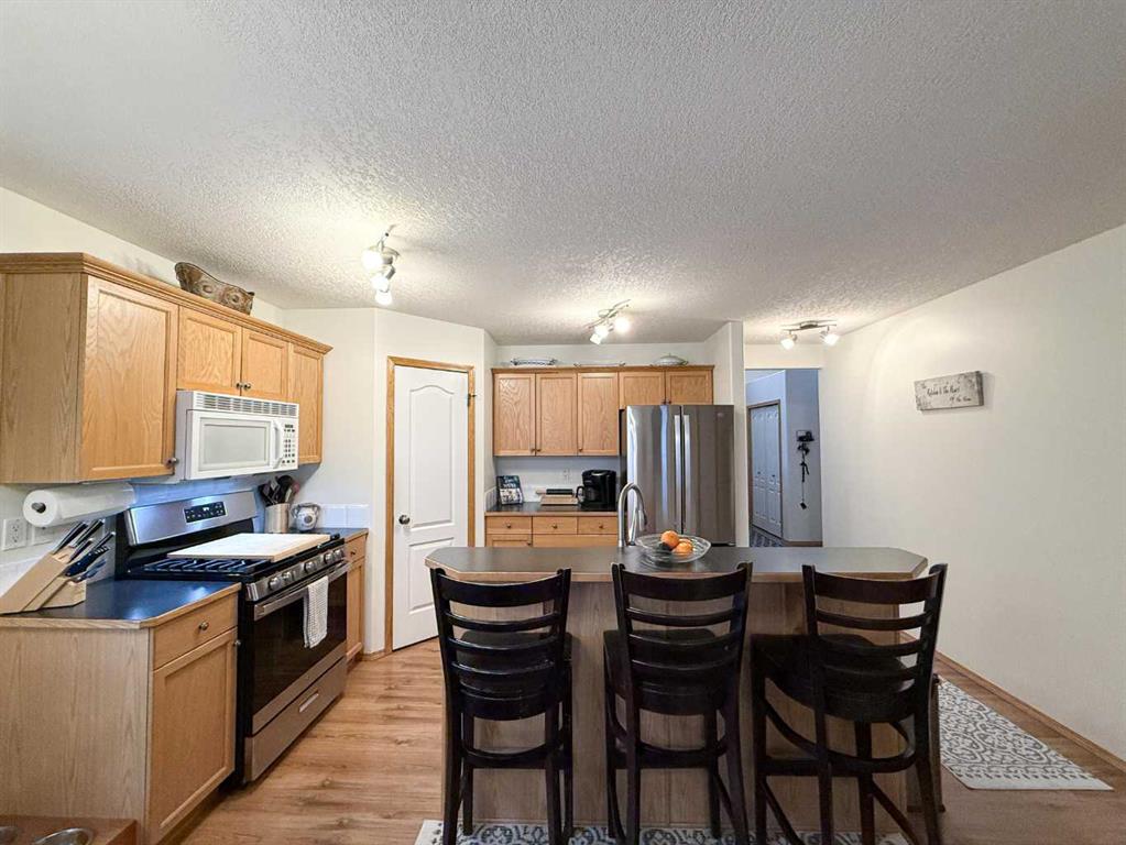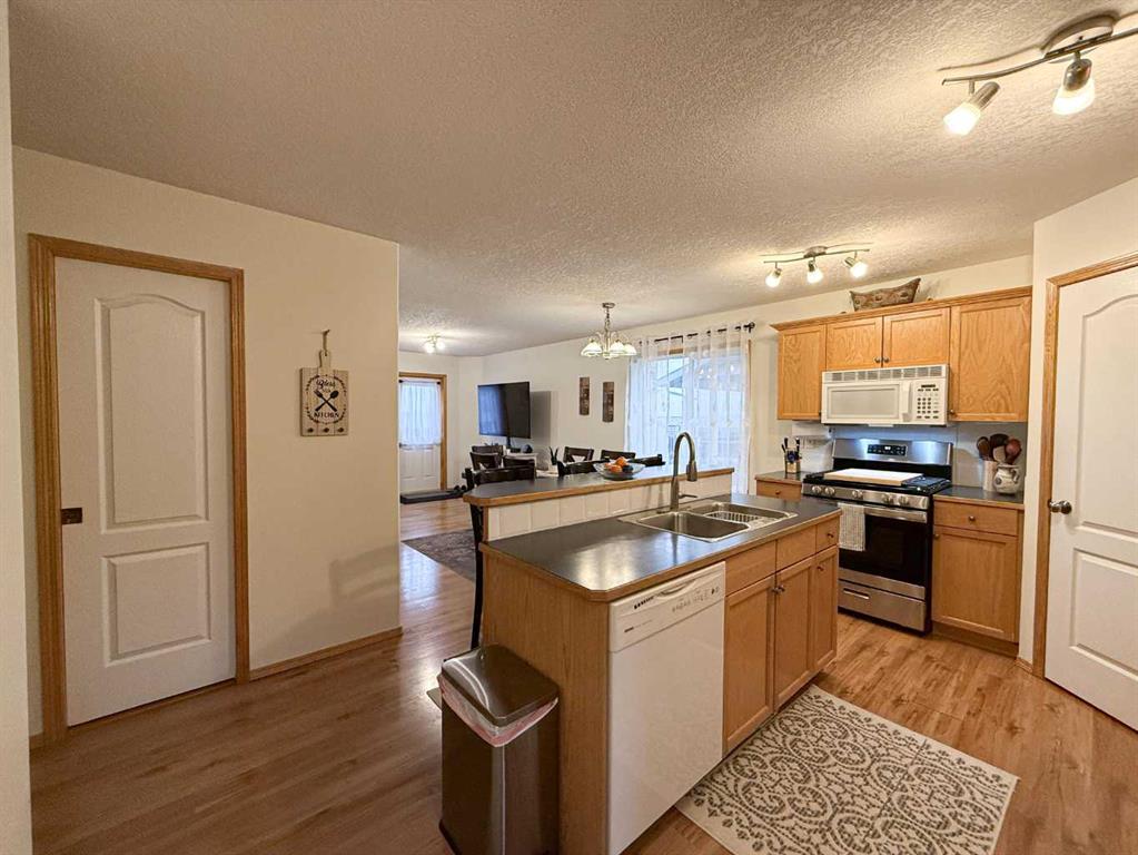Welcome to a wonderful opportunity on Destination Place! This charming 4 bedroom home is located in a quiet, family-friendly neighborhood and backs onto an open field, offering both privacy and stunning views. You’ll fall in love with the unobstructed Mountain View, perfectly framed by the historic Pioneer Elevator. As you step inside, you’re greeted by a spacious and practical boot room with direct access to the attached garage ideal for busy families or Alberta winters. From there, the bright and open main floor welcomes you with a functional layout that includes a generous living room, a dining area perfect for family meals and a well-appointed kitchen featuring a corner pantry, eating bar/island and plenty of storage space. A convenient 2 pce bathroom rounds out the main level. Step outside onto the south facing deck and enjoy the sunshine in your backyard, complete with a stone fire pit area, nice sized deck and a space for a potential dog run. It\'s a fantastic space for relaxing and entertaining. Upstairs, you\'ll find three comfortable bedrooms, including a large primary bedroom with dual closets and plenty of natural light. The layout is perfect for a growing family or those needing extra space for a home office or guests. Downstairs, the fully finished basement adds even more living space with a cozy family room, a fourth bedroom, dedicated laundry room, 3 pce bathroom and tons of storage. Whether you\'re a first-time buyer or looking to move into a welcoming community, this home offers great value, space, and potential. Don\'t miss your chance to make it yours, call today to book your showing!!