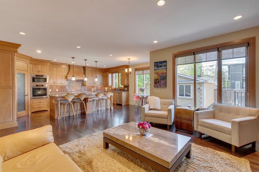 Canopy trees line this family friendly street in coveted West Hillhurst. Boasting over 4,460 sq.ft. of developed living space with fine European finishes, this stunning executive home showcases a gracious 24ft vaulted foyer, and oak hardwood floors. The low maintenance front yard offers underground sprinklers and lush easy to maintain perennials. A front porch is ideal to relax on and welcomes you as you make your way inside to a spacious foyer and large office separate from the main living areas for the utmost privacy. A spacious formal dining room is highlighted by coffered ceilings, while an inviting living room is anchored by custom built-ins and a gorgeous gas fireplace. Culinary enthusiasts will love the gourmet kitchen with solid maple custom cabinets, high-end appliances (Miele and Subzero), and walk-through pantry with access to a large mudroom. The extensive centre island features granite counters and ensures room for entertaining as everyone gathers around. A dramatic curved staircase leads up to a full bathroom and three generous bedrooms, all with walk-in closets. The tranquil primary presents downtown views from the sitting area and features a 2-way fireplace that leads to the lavish 6pc ensuite complete with in-floor heat, jetted soaker tub and separate shower. A convenient upstairs laundry room includes storage, sink, and wraps around to a gorgeous balcony that overlooks the front street. The fully developed lower embraces heated floors, an extensive rec room with custom media built-in and wet bar. Two generous bedrooms, one ideally functioning as a home gym, along with a full bath complete the level. Extend your outdoor living in the south exposed backyard. Dinners on the outside deck extend your space for entertaining or you can relax and unwind after a long day on the lower patio or practice your putts on the mini green. Located within steps to the Karl Baker off-leash dog park, Helicopter Park, the Bow River Pathways system, the Foothills Hospital, and mere minutes to great restaurants, trendy Kensington, and the Downtown Core. This real estate gem is a masterpiece of quality workmanship and ready for you to call \"home.\"