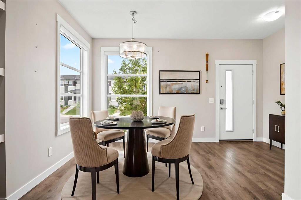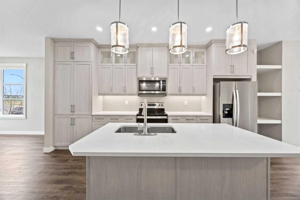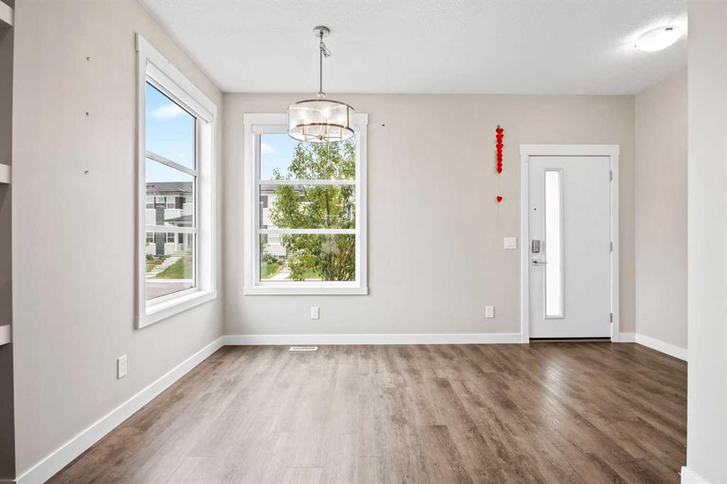 PRICE REDUCTION TO SELL....Welcome to this gorgeous Sky Pointe two-storey END UNIT townhouse with NO CONDO FEES and a FULLY FINISHED BASEMENT, offering the perfect blend of style, space, and convenience in the vibrant Skyview community! From the moment you arrive, you’ll love the private FENCED and LANDSCAPED YARD, complete with a DOUBLE DETACHED GARAGE, all included in the price. Step inside to a bright open-concept main floor featuring a front great room with large picture windows, a stunning modern kitchen with STAINLESS STEEL appliances, QUARTZ countertops, tiled backsplash, and a generous island with eating bar that flows seamlessly into the dining area, perfect for family dinners or entertaining friends. Upstairs you’ll find three bedrooms, including a lovely master with built-in wardrobe and private ensuite, plus the convenience of upper-level laundry. The fully finished basement adds incredible living space with a family room complete with wet bar, an additional bedroom, and another full bathroom, making it perfect for guests or extended family. All of this in an unbeatable location within walking distance to grocery stores, restaurants, banks, parks, schools, and transit, with future C-train access nearby, minutes to the airport, and easy access to Stoney and Deerfoot Trail. This is truly an amazing modern home in a fantastic location with unbeatable value!