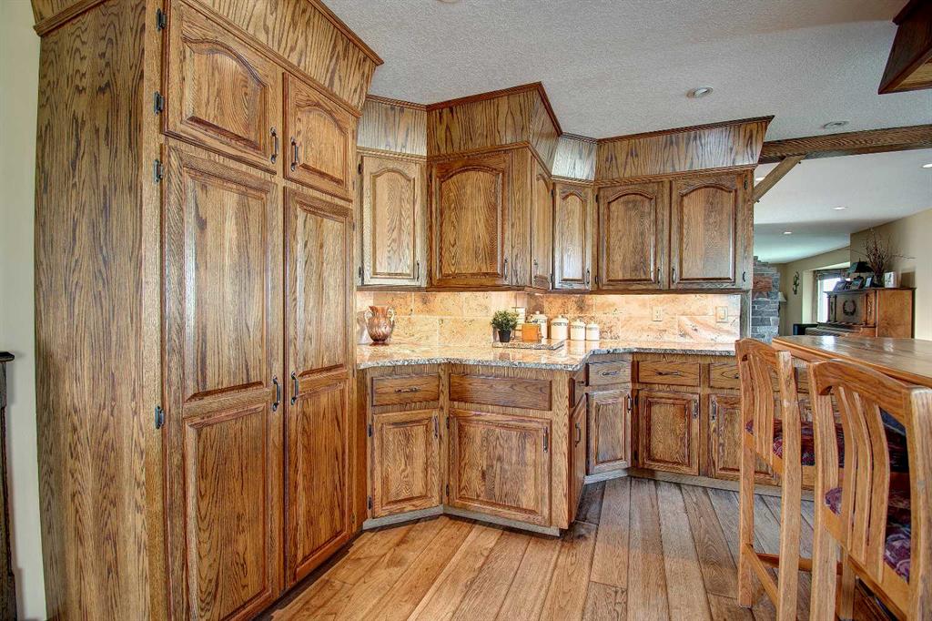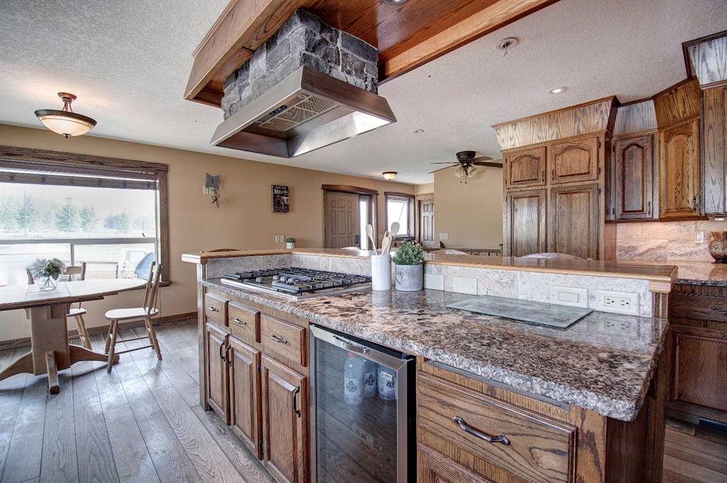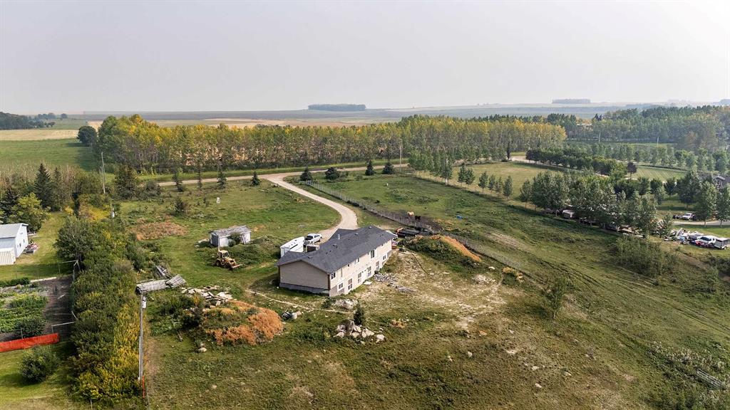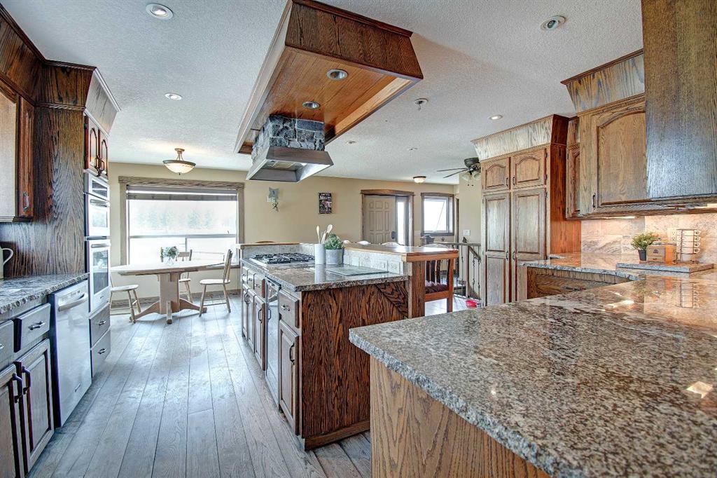 Opportunity knocks! DO NOT MISS OUT on this home on 20 acres backing onto COULEE. The home was moved onto a new foundation and substantially renovated in 2009. The foyer leads to the stunning kitchen with TONS of stained oak cabinets, granite counters, stainless steel appliances and large eat-in area. The formal dining room is very spacious allowing for a big dining table set and has a 2-way stone covered fireplace as a focal point. The formal living offers big windows allowing for plenty of natural light. There are two HUGE bedrooms on main floor one of which is the primary retreat that features a STUNNING 5 pce ensuite bathroom with a separate walk-in closet shower, soaker tub and walk-in closet. Finishing the main floor is another four piece bathroom, powder room and laundry room. The lower level is almost fully finished with in-floor heat, wet bar, wood fireplace and an almost complete bathroom (fixtures in place), and 2 great sized bedrooms! Outside there is SO MUCH POTENTIAL to create an oasis type of space with amazing views to the West. This will not last - call you favorite agent to book a viewing!