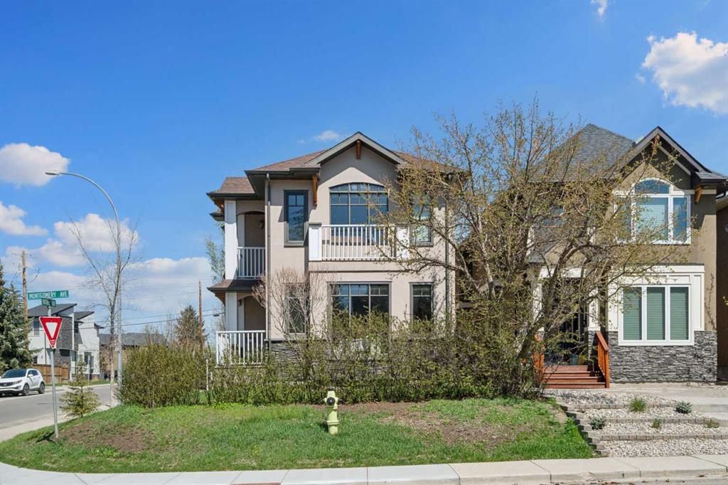 Live by the river and bike all the way to downtown year-round along the Bow River pathway system. Located in the Montgomery Golden Triangle, between Edworthy and Shouldice parks, this custom-built (builder buit for himself),CORNER LOT, DETACHED uxury house has a beautiful and unique and functional layout, with 5 SPACIOUS BEDROOMS (3 up, 2 down) with walk-in closets. The vaulted ceiling primary bedroom has its own private balcony to enjoy views of Edworthy Park and Trinity Hills. The main floor has two fireplaces, living room/library, a formal dining room and separate breakfast nook. The kitchen has a large walk-in pantry and overlooks the family room, which is perfect for entertaining and family time. The fully-finished BASEMENT HAS IN-FLOOR HEATING, massive recreation room that is well suited for a home theatre and game room and kitchenette. NO CARPETS in this home, only hardwood and tile. Numerous features sets this house apart: Rare location just steps to the river, unique layout, quality built, Premium windows with wood interior with wide metal exterior cladding, built-in wall units and desks, real wood floors, maintenance-free vinyl deck and fence, landscaped with many trees, oversized garage (with a 200 amp subpanel, ready to add a EV charging receptacle) to fit a truck, and RV PARKING. This neatly maintained and cared for house is just a few minutes drive to U of C, MRU, Foothills & Children\'s Hospitals, SAIT, Downtown and Market Mall.