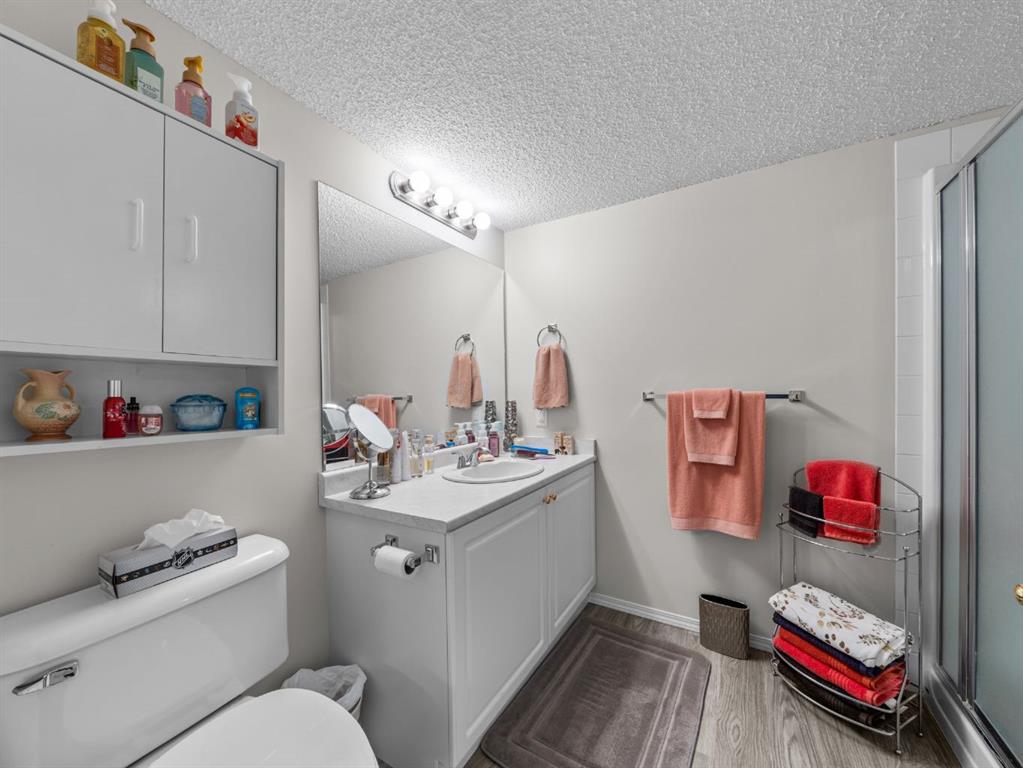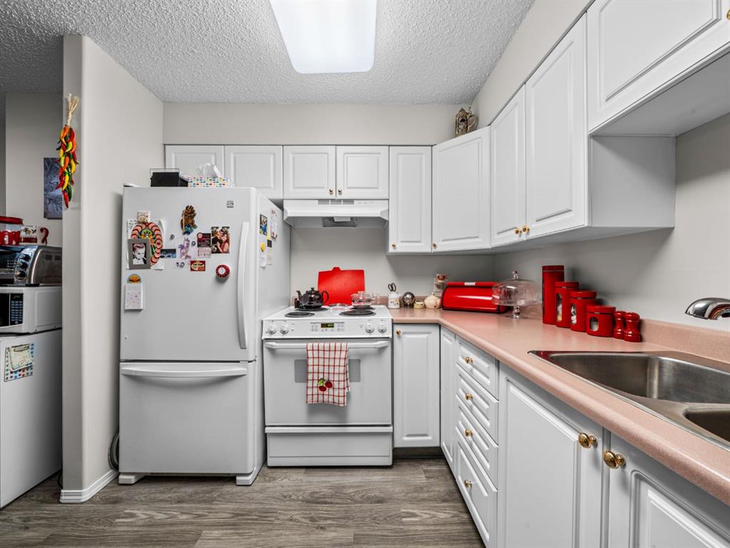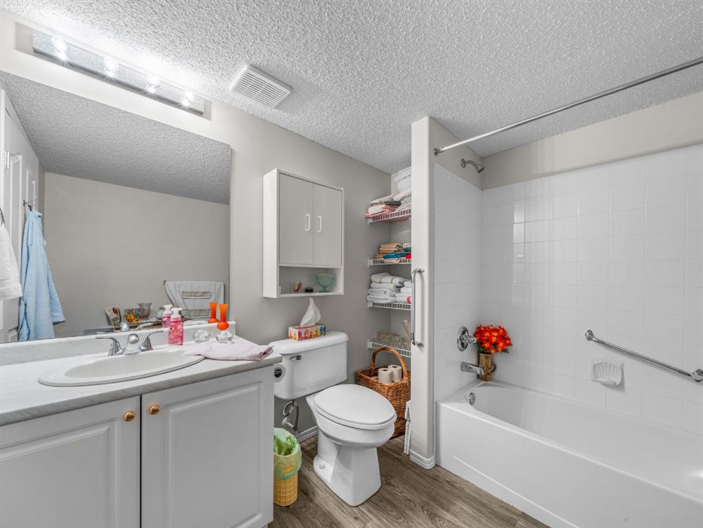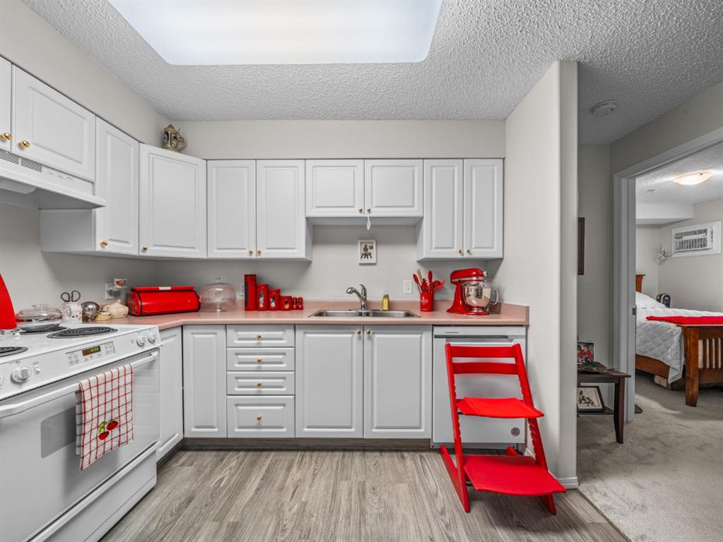 Welcome to comfort, convenience and community in this beautifully updated 2 bed, 2 bathroom ground-floor unit in the heart of Millrise’s 60+ adult living building! Enjoy easy access with no stairs, a spacious patio oasis perfect for flowers or your own mini garden, and thoughtful updates throughout. Upgrades include: newer flooring, fresh paint, newer washer/dryer, updated bathroom vanities & lighting, new cupboard hardware, newer hood fan, and a newer dishwasher. The bright kitchen features plenty of storage, and the large open living and dining space is perfect for entertaining. Stay cool with a window A/C (only 4 years old) in the primary suite and a ceiling fan in the main living area. This unit also comes equipped with a walk-in shower in the second bath and a tub in the primary ensuite for relaxing baths.