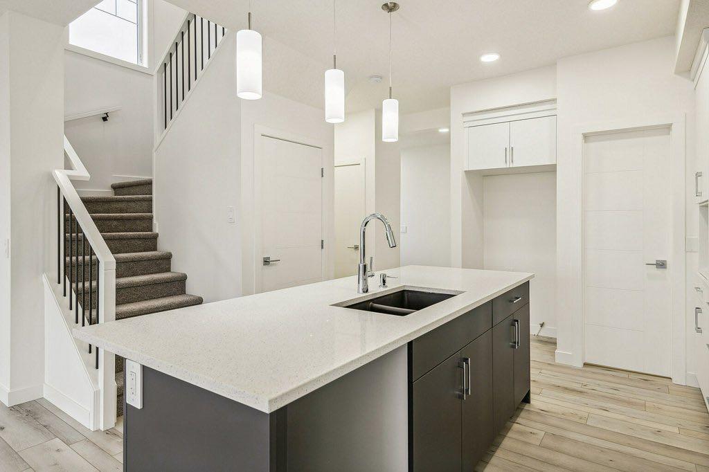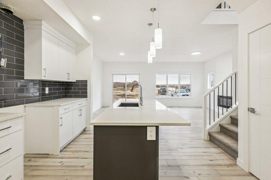 PRICED BELOW COMPARABLES * HOME IS UNDER CONSTRUCTION * LOOK MASTER BUILDER has gone above and beyond with a long list of upgrades, creating a home designed to impress from the moment you step inside. With its wide open layout, thoughtful details, and modern finishes, this home is built for both everyday living and entertaining. The chef’s kitchen is the heart of the home, featuring an 8 ft. island with a full-length eating bar and quartz countertop, walk-through pantry, stylish two-tone shaker cabinetry with soft-close doors and drawers, and a Blanco Silgranit sink with soap dispenser. Upgrades include rough-ins for a built-in microwave and chimney hood fan, two sets of deep pots and pans drawers, 36” upper cabinets, and a gas line to the stove. Overhead, three elegant pendant lights complete the look in the great room, you’ll enjoy a 50” fireplace with mantle, an in-wall TV conduit, and bright triple-pane windows with custom “Zebra Blinds.” Every detail has been carefully chosen, from the Berkley modern interior doors for added sound reduction to the sleek black hardware and striking metal spindle staircase. The main floor is finished with durable QUEST XL Luxury Vinyl Plank flooring, with vinyl tile in upper bathrooms and laundry. Upstairs, the private primary suite has a double-sink quartz vanity, freestanding tub, oversized tiled shower to the ceiling, and a spacious walk-in closet. The second floor also includes a large laundry room, convenient tech space, two more stylish bathrooms with upgraded tile and vanities, and a huge bonus room perfect for family movie nights. This home is as functional as it is beautiful, with a mudroom featuring a built-in bench and hooks, clean air HRV system, humidifier, high-efficiency 2-stage furnace, 80-gallon hot water tank, Ecobee Smart Thermostat, 200 AMP electrical panel, and plumbing rough-ins for a future basement bathroom, laundry, and kitchen. Exterior highlights include a Prairie elevation with stone accents and a $500 landscaping certificate. Possession day will feel like moving into a dream home where every detail has been thought of for you. Photos are representative. RMS measurements are taken from Builder’s blueprints.