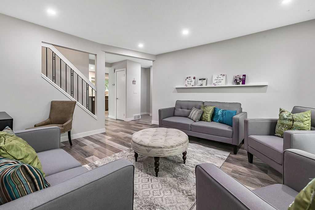This home is a must see, located on a quiet street backing onto a greenspace in Castleridge, and only blocks from schools, shopping and the great amenities of Prairie Winds Park - perfect for your family! As you walk through the home you can sense the love and warmth it offers your family. The entire home finishings were updated within the last 5 years including kitchen cabinets, concrete countertops, new vinyl plank and tile floors, all trim and doors, paint, and bathrooms. Be welcomed into a HUGE living room that can accommodate any seating or entertainment set up you need, along with space for a desk too! The big bright windows allow light to flow through and fill the main floor with natural light. Continue on to the spacious, functional, custom kitchen with great storage and new stove (2024). The eating bar counter is open to the dining nook which has sliding patio doors leading to a large deck, making the space perfect for entertaining or quiet relaxation in your large private yard on a pie lot. Whether it\'s the back deck or the covered front porch, this home offers peaceful outdoor spaces to enjoy with family and friends. Watch the kids play in the yard, or gardeners can take advantage of the raised garden boxes, a greenhouse, and fruit-bearing saskatoon bush and grape vine. The main floor also offers a 2 piece powder room for your guests to the right of the front door. After taking the staircase, which has updated metal spindle railings, on the second floor you\'ll find the main 4 piece bathroom and two bedrooms for the kids, before you get lost in the spacious primary bedroom! In the basement, you\'ll find a large family room great as an TV or entertainment room including an office area with built in desk. Another flex room would be perfect as a gym, hobby or play space or guest room (non-egress window). There is an unfinished storage area and bright laundry room thanks to a window, with newer washer and dryer from 2023 and water tank from 2017. Additional storage can be found below the stairs. There is ample street parking on top of the tandem driveway with space for two vehicles. With this home, you can relax knowing the fence, siding, eaves and windows were done in the last 4 years, and the roof only 10 years ago. The porch and deck were refinished in 2025 and the landscape was spruced up with fresh bark mulch as well. Book your showing soon, this great home won\'t last long!