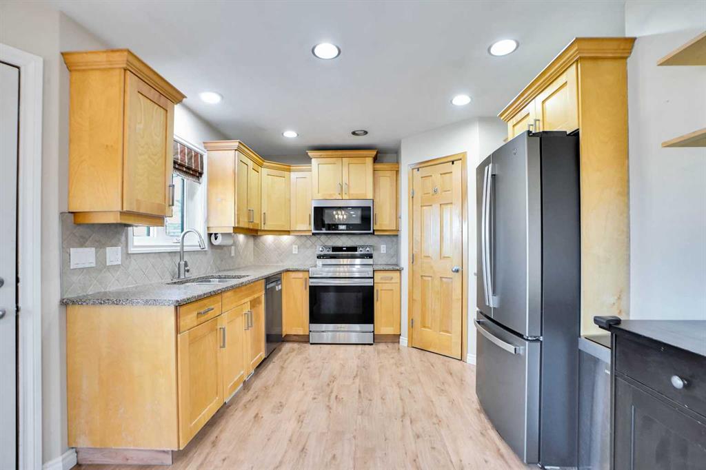 Inside, the main floor is bright and open, thanks to the large windows that let in lots of natural light. The kitchen is well laid out with newer appliances, a big pantry for extra storage, and handy under-cabinet lighting. You’ll also find main floor laundry here, making everyday chores a little easier.