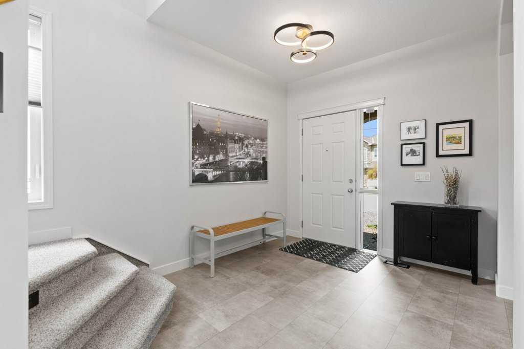 Be prepared to be wowed by this extensively renovated two storey home in desirable Cranston Estates, complete with striking curb appeal and a triple heated garage. Over the past three years, more than $350,000 has been invested in thoughtful, top-to-bottom renovations, transforming this home into a truly turnkey property that combines high-end finishes with comfortable, functional family living. The main floor welcomes you with a spacious foyer and a custom designed den featuring sleek built-in cabinetry and a dedicated desk area, ideal for working from home. The fully renovated kitchen is a showstopper, boasting full-height custom white cabinetry, top-of-the-line appliances, quartz countertops, and a dark-stained, oversized island that creates stunning contrast and provides ample space for entertaining. The adjacent dining nook offers access to the rear deck and flows seamlessly into the bright, open-concept great room with a cozy gas fireplace. A large mudroom/laundry area and a stylish half bath complete the main level. Upstairs, you’ll find a bonus room loft area, perfect as a lounge or play space, a spacious primary suite with a luxurious, fully reimagined 5-piece ensuite, and a walk-in closet designed with California Closets. Bedrooms two and three are well sized, each with closet built-ins, and one cleverly outfitted with Murphy bunk beds. A tastefully modernized 4-piece bathroom completes the upper level. The fully finished lower level offers even more living space with a 3-piece bathroom, a rec room featuring an electric fireplace, a fourth bedroom, and a utility room. The west-facing backyard is entirely maintenance-free, finished with premium artificial turf, while the front yard is beautifully landscaped with stonework and shrubs for year-round curb appeal. The list of renovations is extensive and showcases the quality and care put into this home. GEMSTONE exterior lighting adds elegance and flair, while the Caséta smart lighting system offers cutting-edge convenience. Ultra-durable luxury vinyl tile flooring spans the main and upper levels, complemented by UV-blocking window film on all windows to enhance comfort and efficiency. Every closet has been customized with California Closets, all bathrooms have been renovated to a high standard, and designer lighting fixtures have been thoughtfully selected throughout. The triple heated garage features epoxy flooring, and the home is equipped with central air conditioning for year-round comfort. Beautiful inside and out, this exceptional home is located just steps from schools, amenities, golf, Fish Creek Park, and the community pathway system, with easy access to both Stoney and Deerfoot Trail. Residents also enjoy access to the Cranston Community Centre, offering tennis courts, a hockey rink, basketball courts, a playground, and a splash park, perfect for families and outdoor enthusiasts alike. Don’t miss your chance to own this extensively renovated, high-end home! Cranston living at its absolute finest!