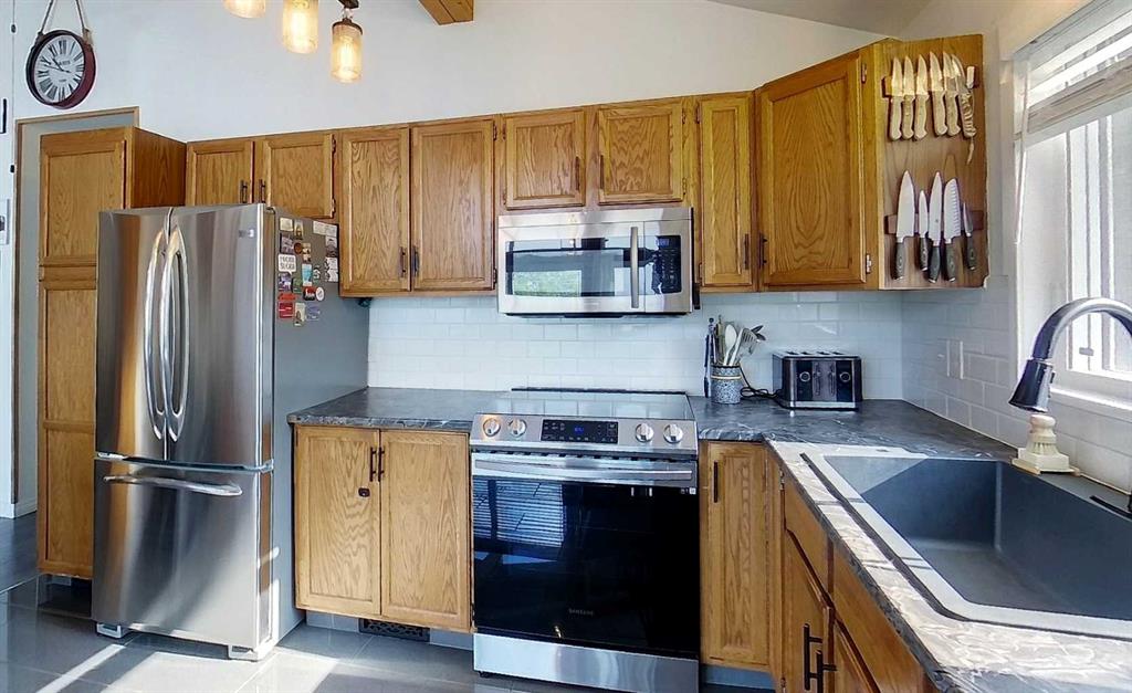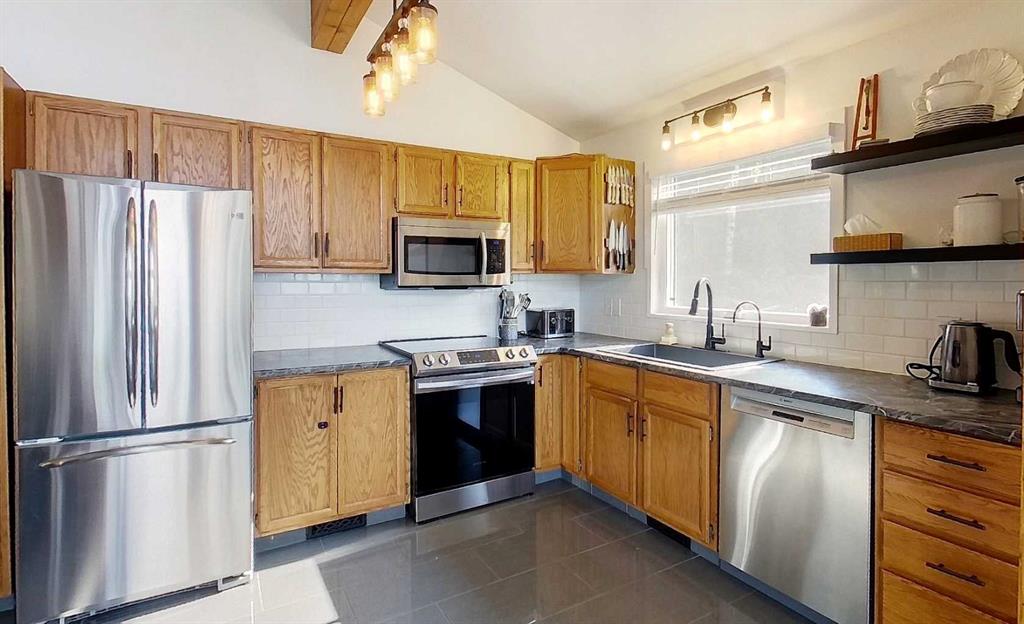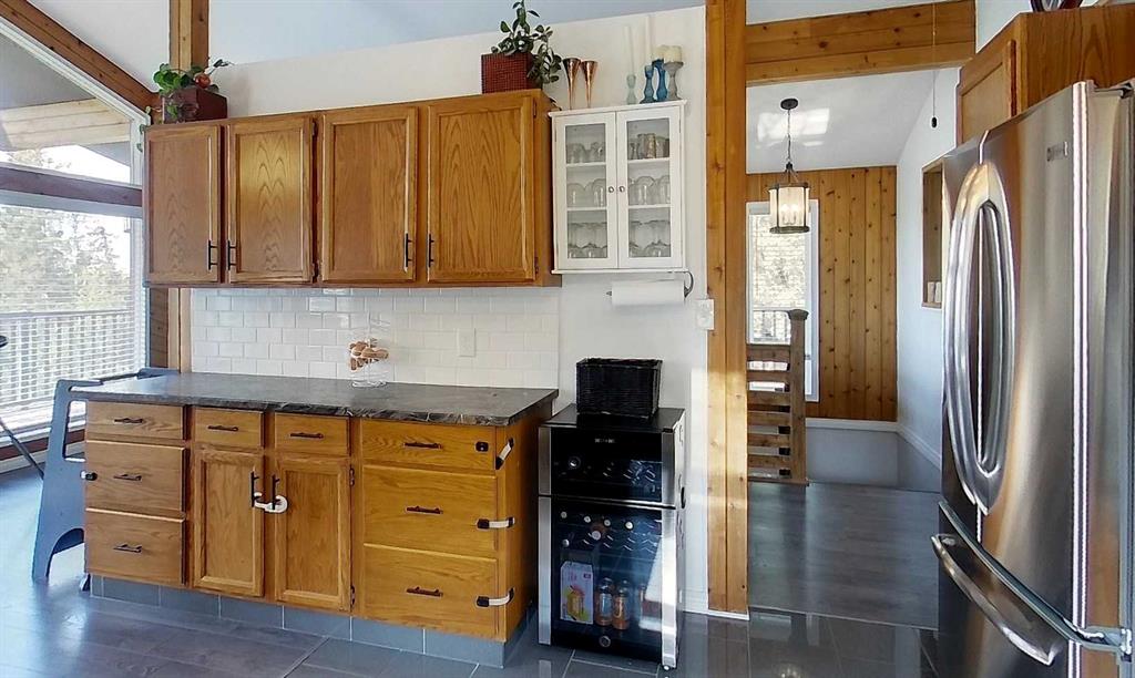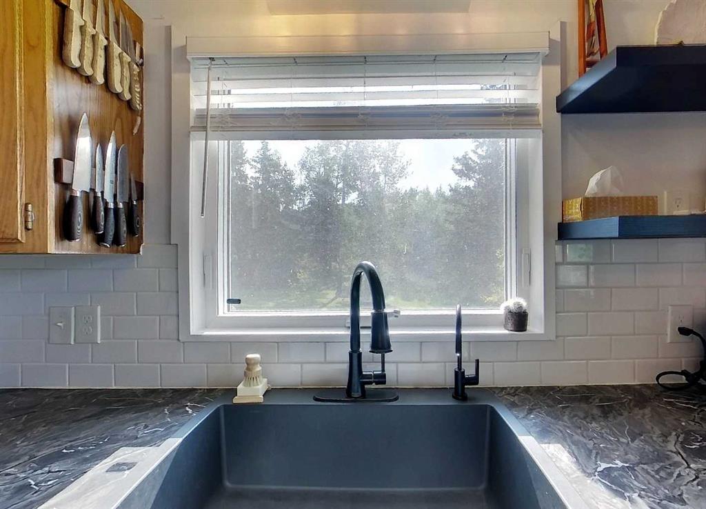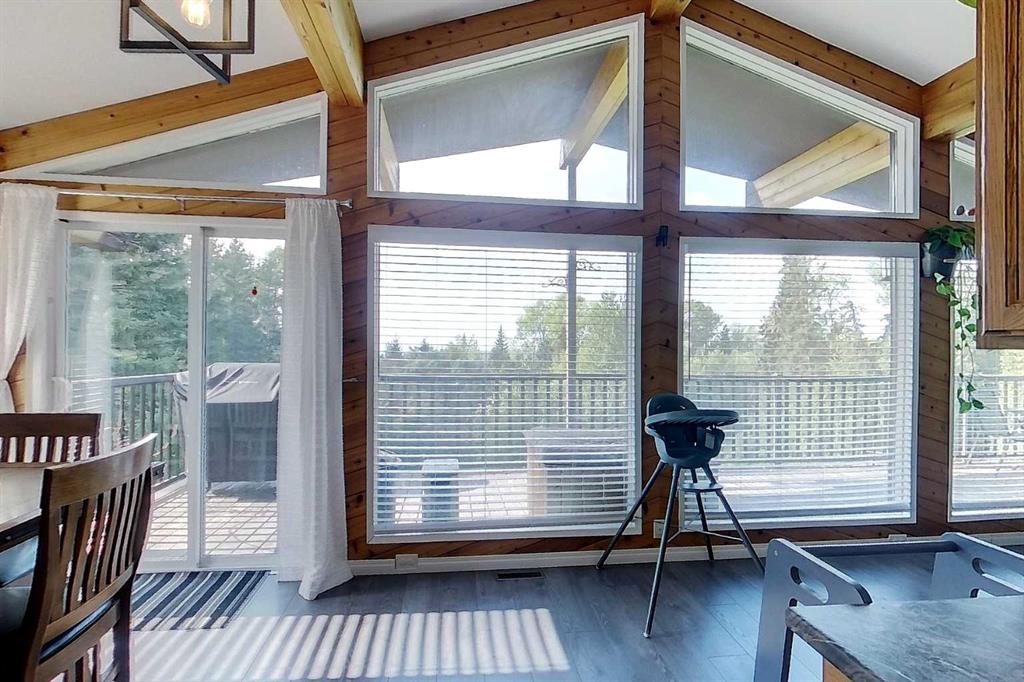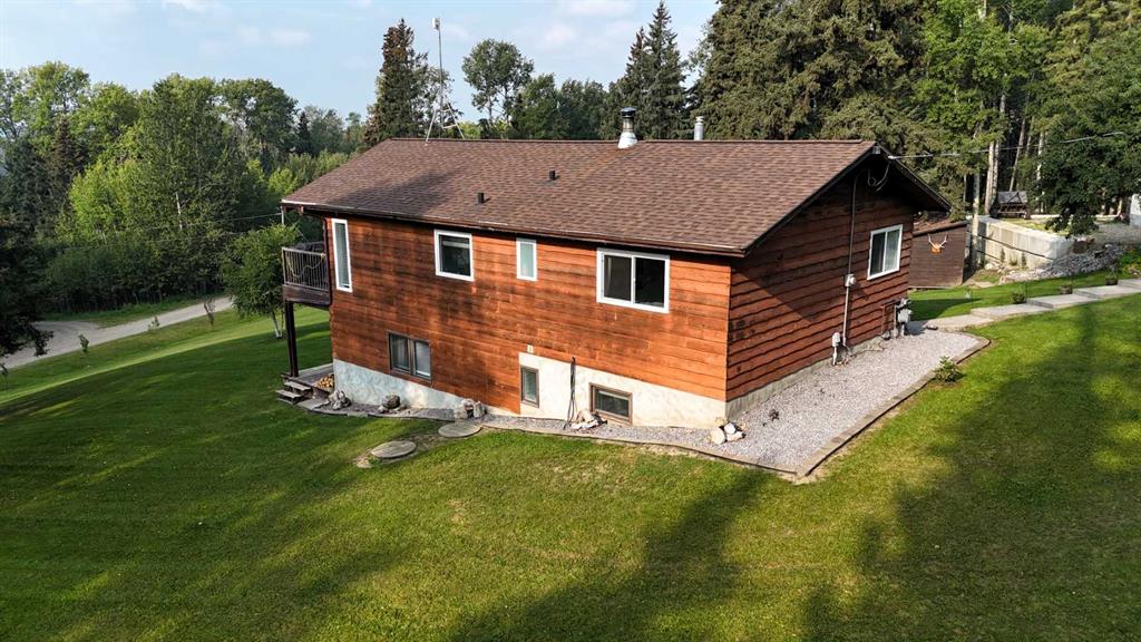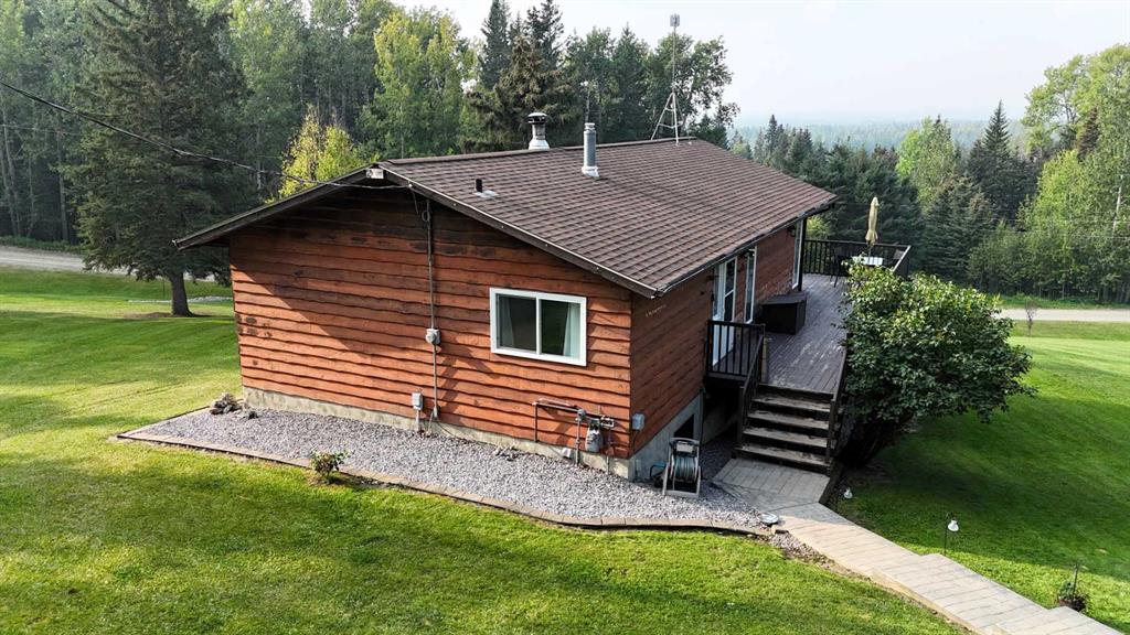 Stunning mountain views can be enjoyed right from the main living area or while sipping your morning coffee on the expansive 479 sq. ft. wrap-around deck. Just minutes from town, this property has been beautifully landscaped with rock and flower gardens, mature trees, a garden area, and natural growth that enhances the peaceful setting. The home itself has been lovingly updated and offers an inviting main floor with bright living space, two bedrooms, and a 4-piece bathroom. The fully finished walk-out basement adds even more living area with a spacious family room warmed by a wood stove, large primary bedroom with a 3-piece ensuite, a generous laundry room, and plenty of storage. Extensive renovations and modern upgrades have been completed, providing comfort and peace of mind for years to come. The home has seen some new windows and doors, fresh paint, flooring, and lighting, as well as central A/C, an energy-efficient furnace, shingles, and hot water tank updates. The heated 28x22 garage features upgraded man and overhead doors with new openers, while outside you’ll find a woodshed with attached tack shed. Additional features include reverse osmosis water, a recently serviced septic system, and annual road lease income of approximately $1,400. This property offers the perfect balance of natural beauty, functional living space, and modern convenience.