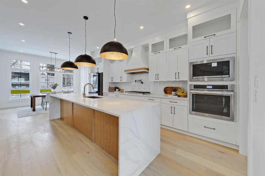 You’ll want to grab this one before it’s gone! This stunning, red brick SEMI-DETACHED home w/ 2-BED SUITE (subject to permits and approvals by the city) in beautiful GLENBROOK is everything your family wants and needs in an upgraded, brand-new infill home. Glenbrook offers you everything you want in an idyllic inner-city neighbourhood – quiet, tree-lined streets, kids playing in the parks, walkable amenities and local schools, with quick access to Downtown, shopping, the mountains, and more! You’re right by the Glenbrook Community Assoc., AE Cross School, the Glenbrook Park Off-Leash Area, Optimist/George Blundun Arenas, and Richmond Road for lots of shopping options! And your spacious home is just as great as the community it’s in! The open-concept main floor features 10-ft ceilings, engineered hardwood flooring, a large foyer with access to the elegant powder room, a dedicated dining room with views of the front yard, and a chef-inspired kitchen with direct/walkthrough access to the rear mudroom – perfect for grocery trips! The central kitchen features a large island with a quartz countertop, ceiling-height custom cabinetry, a full-height kit kat tile backsplash, and a lovely stainless steel appliance package with a gas cooktop. The mudroom enjoys built-in cabinetry and direct access to the double detached garage, and is separated from the rear living room, a nice touch for everyday convenience. The living room centres on an inset gas fireplace with built-in millwork and a large sliding glass door overlooking the backyard. Upstairs, enjoy more living space in the loft area that’s perfect for work-from-home w/ a built-in desk! The primary suite features a vaulted ceiling, a large walk-in closet, and an elegant 5-pc ensuite with tile floors, a freestanding soaker tub, dual sinks, a modern vanity with quartz counter, and a walk-in shower with full-height tile surround. There are also two secondary bedrooms, a modern 5-pc bath with dual sinks, and a large laundry room with quartz folding counter and tile floors. Through a private, secure side entrance, you enter the lower level and the 2-bed basement suite (subject to permits and approvals by the city), which features everything a young couple, mother-in-law, or renters need! This contemporary space comes with luxury vinyl plank flooring, a dedicated laundry room, a lovely kitchen with quartz counters and full-height cabinetry, an open living room, two good-sized bedrooms with built-in closets (one being a walk-in), and a fully equipped 4-pc bathroom with tub/shower combo with full-height tile surround. This is the perfect space for a mortgage helper or welcoming in family! Don’t hesitate – let’s chat about turning this brand-new semi-detached infill into your family’s new home today!