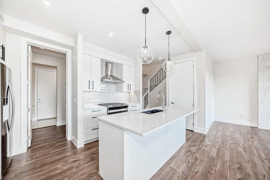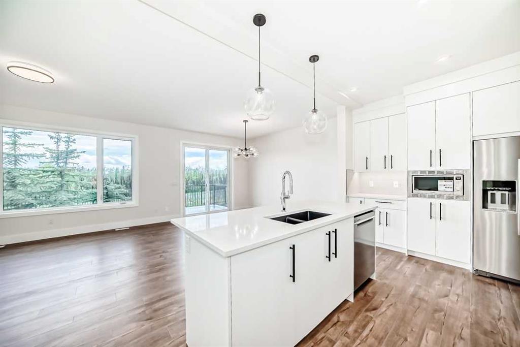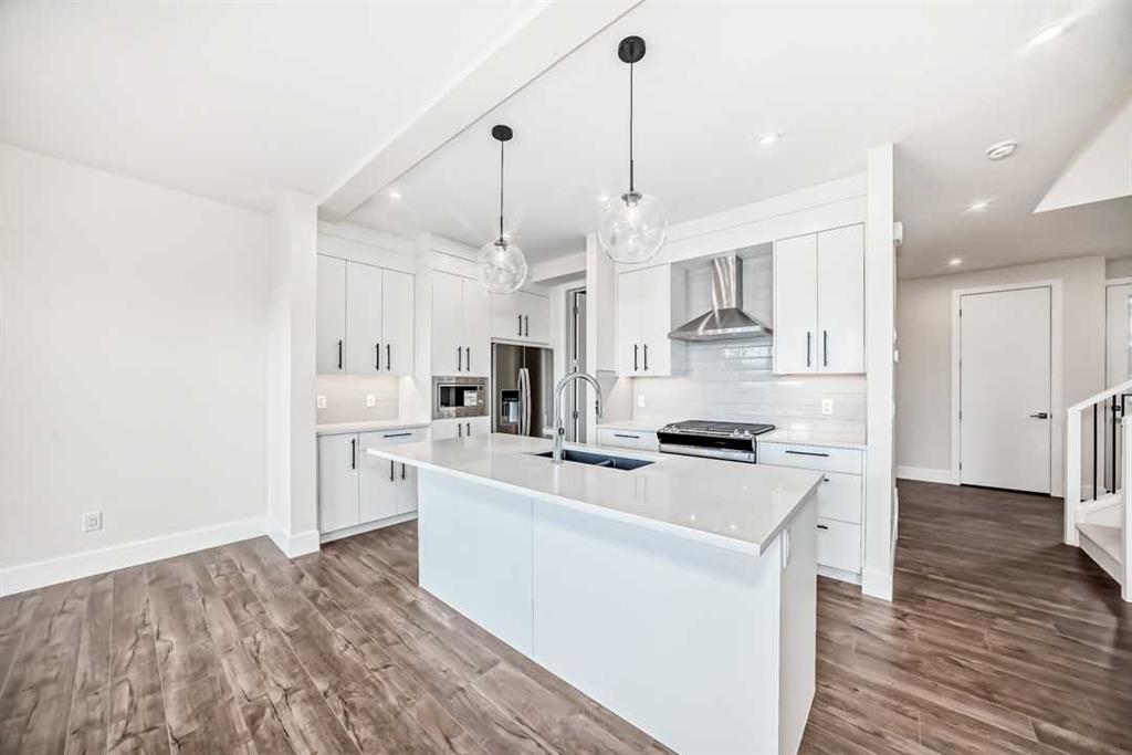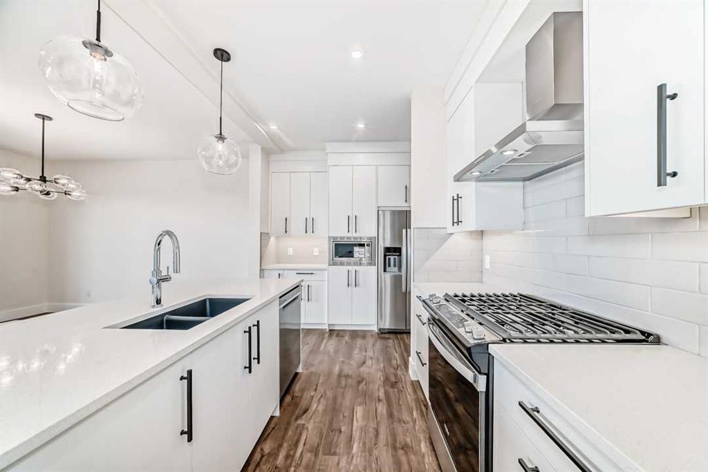 Immerse yourself in elevated living within this brand-new, never-lived-in Truman \"Forte\" residence, where sophistication and architectural finesse converge over 2,800 sq ft of exquisite living space. This home is a showcase of understated luxury, featuring an all-white and cream palette complemented by modern floors and striking 8 ft doors from the entry all throughout the main level accentuated by soaring 9 ft ceilings – a signature of grandeur and open space. The gourmet kitchen is a culinary sanctuary, adorned with gleaming quartz countertops, custom cabinetry with undermount lighting, and a premium stainless steel appliance package, including a gas range. The seamless flow extends to the vinyl deck – perfect for al fresco dining – complete with a gas line for BBQs. Upstairs, retreat to the serene primary suite, a sanctuary of tranquility with a 5 pc spa-inspired ensuite that exudes sophistication. Double vanities, a deep soaker tub, and a glass-enclosed shower are framed by crisp white finishes and gleaming chrome accents. Three additional bedrooms share a stunning 5 pc family bath, and a spacious bonus room offers a welcoming space for relaxation or a home office. The fully finished basement is a masterpiece of versatility, featuring a wet bar, expansive recreation room, private guest suite, and a luxurious 4 pc bathroom – all with the same exquisite design continuity. The separate entrance provides added privacy and functionality, making it ideal for entertaining or multi-generational living. The meticulously crafted exterior showcases stucco and Hardie board siding, harmonizing beauty and durability. Built to Truman’s Benchmark specifications, this home is a testament to quality, with a Vacu-Flo rough-in, security system rough-in, and a substantial 80-gallon high-efficiency hot water tank providing continuous comfort. Situated in one of Calgary’s most prestigious communities, this residence offers an unparalleled lifestyle with proximity to Aspen Landing’s upscale shopping and dining, the Westside Rec Center, and premier schools such as Webber Academy, Rundle College, and Ernest Manning High School. Discover the epitome of luxurious living where timeless design meets exceptional craftsmanship – a haven of sophistication with a palette of white and cream accented by rich, dark hardwood floors.