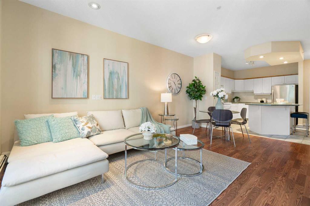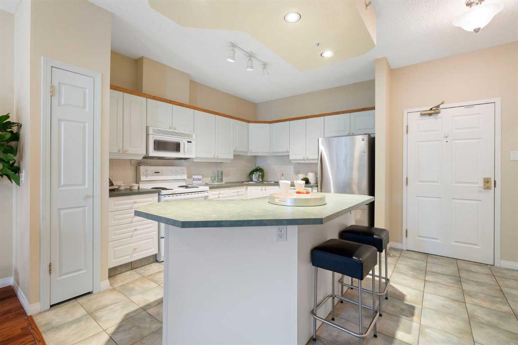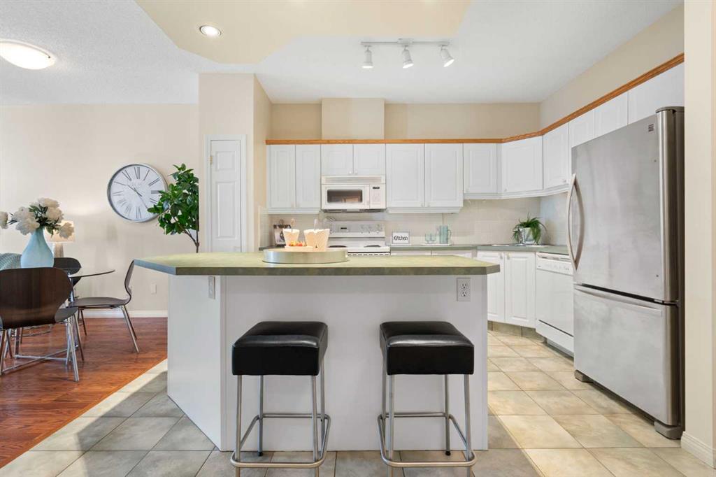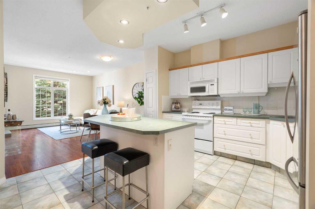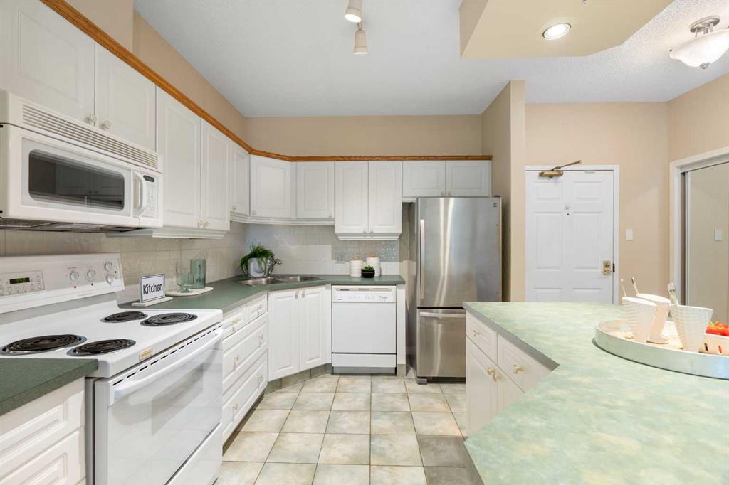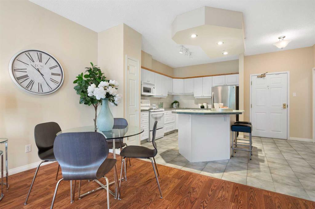 Welcome to The Phoenician, an exceptional adult (18+) community known for its beautifully landscaped grounds, warm atmosphere, and prime location. This spacious 2 bedroom, 2 full bathroom condo is tucked away in a secluded spot overlooking the serene courtyard, providing both privacy and a peaceful view. The bright, open concept layout offers a large island kitchen with pantry, generous living and dining areas, and a garden door leading to your private balcony. Thoughtful updates include newer tile, laminate flooring, sinks, and toilets. The bedrooms feature cozy carpet, while the rest of the unit has easy-to-maintain laminate. The primary bedroom is air-conditioned for year-round comfort (brand new air conditioner), and the other bedroom includes a built-in Murphy bed for added functionality. The primary suite is a true retreat, complete with a full ensuite, walk-in closet, and its own air conditioning unit. Additional conveniences include in-suite laundry, heated underground parking, and a separate storage locker. Life at The Phoenician is enriched by an impressive array of amenities: a theatre and media room, library and reading lounge, games and billiards area, and a recreation room with a cozy fireplace. Residents also enjoy a workshop and hobby room, well-equipped fitness centre, community kitchen, car wash bay, and two guest suites for visitors. The building is expertly managed with an on-site resident manager and four elevators for ease of access. The location is outstanding — just steps to Dalhousie Station, with shopping, dining, and the C-Train at your doorstep. The University of Calgary, Market Mall, Foothills Medical Centre, University District, and downtown Calgary are all just minutes away. Blending comfort, convenience, and a true sense of community, this well-managed residence offers an unparalleled lifestyle in one of northwest Calgary’s most sought-after buildings. Don’t miss the chance to make it your new home.