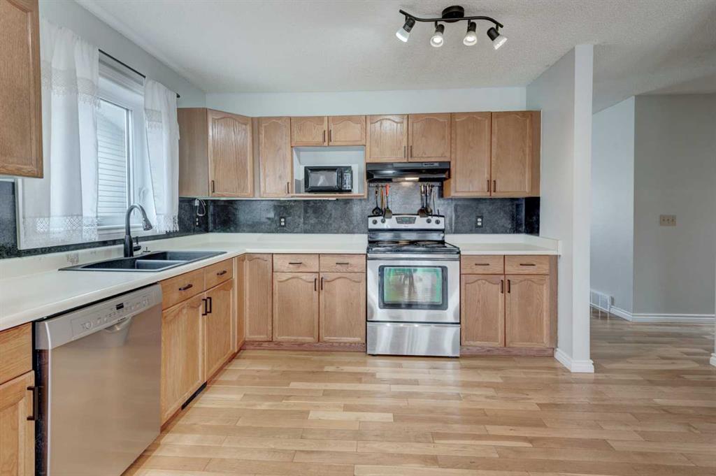 This fantastic, updated home is ready for new owners. Excellent culdesac location with easy access to the park, shopping and Sheep River. The spacious main floor features hardwood floors in all the main upstairs living areas. Inviting living room is the perfect place for family or guests where you can cosy up around the brick fireplace. The kitchen is a great gathering spot and features plenty of counter and cupboard space including a pantry. French doors lead to the sunny south backyard and large deck. Down the hall is the laundry well located next to the three bedrooms that all have new carpet. For maximum privacy the primary bedroom is complete with an efficient walk-in closet and ensuite bath. Fully finished basement has a fourth bedroom and den that makes a great home office. The large family room features an electric fireplace for those cold winter nights. Completing this level is a full bathroom, laundry area and kitchen. The property is zoned for a secondary legal suite which would be subject to permitting and approval by the town/municipality. In the past the basement has functioned as an illegal suite and has extra sound proofing between floors (insulation and 2 layers of 1/2\" drywall). Oversized double garage can be accessed from the front street. Convenient additional off-street parking in front allows for multiple vehicles. Enjoy the beautiful south backyard and massive decks. The location is outstanding just a short walk to restaurants and shopping. Everything in this home has been thoughtfully designed with comfort of living in mind. Hot water tank new in 2023, shingles 2014, furnace 2015.