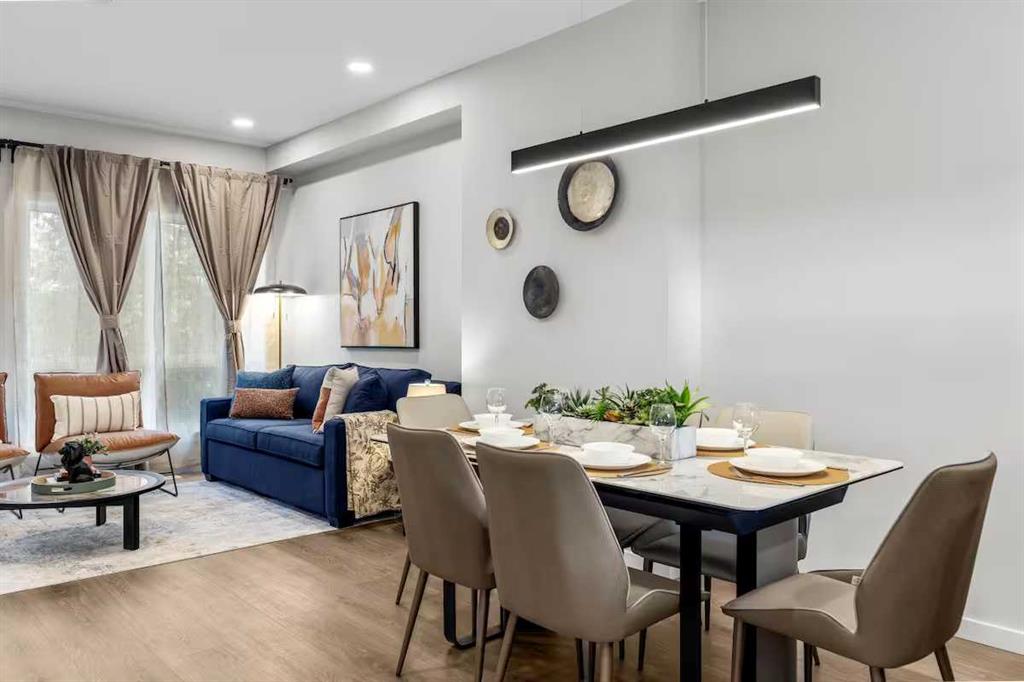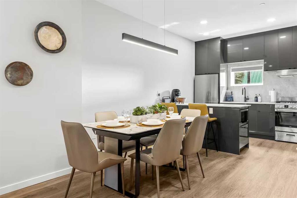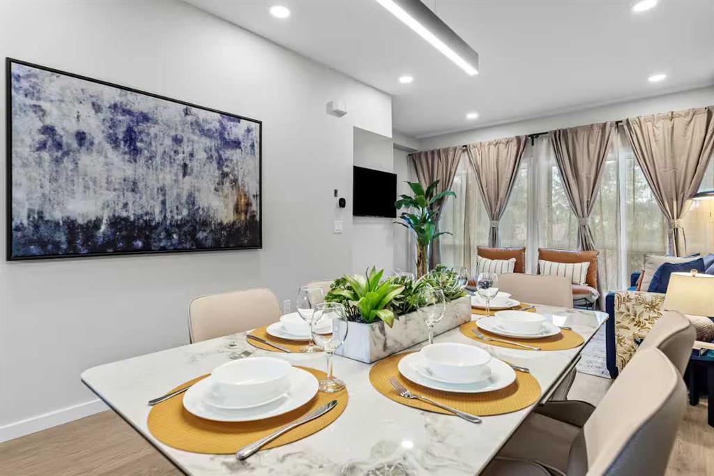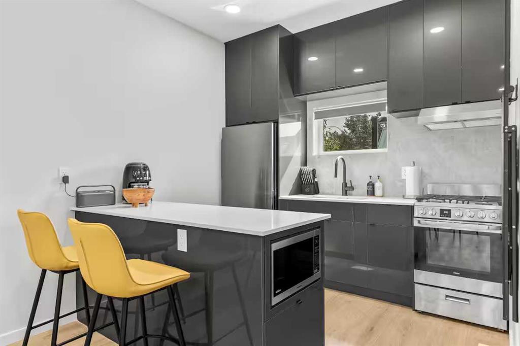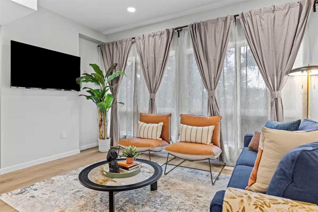 This three-bedroom, three-and-a-half-bath townhouse is more than a property—it is an experience. Step inside and be welcomed by soaring ceilings and a layout crafted for comfort and privacy. The master suite, crowned with a twelve-foot ceiling, opens onto a generous rooftop deck where a private hot tub awaits. Here, your guests can unwind beneath the stars, gazing at the breathtaking Three Sisters after a day of hiking, skiing, or simply exploring the charm of downtown Canmore, just steps away from cafés, restaurants, and boutique shops.