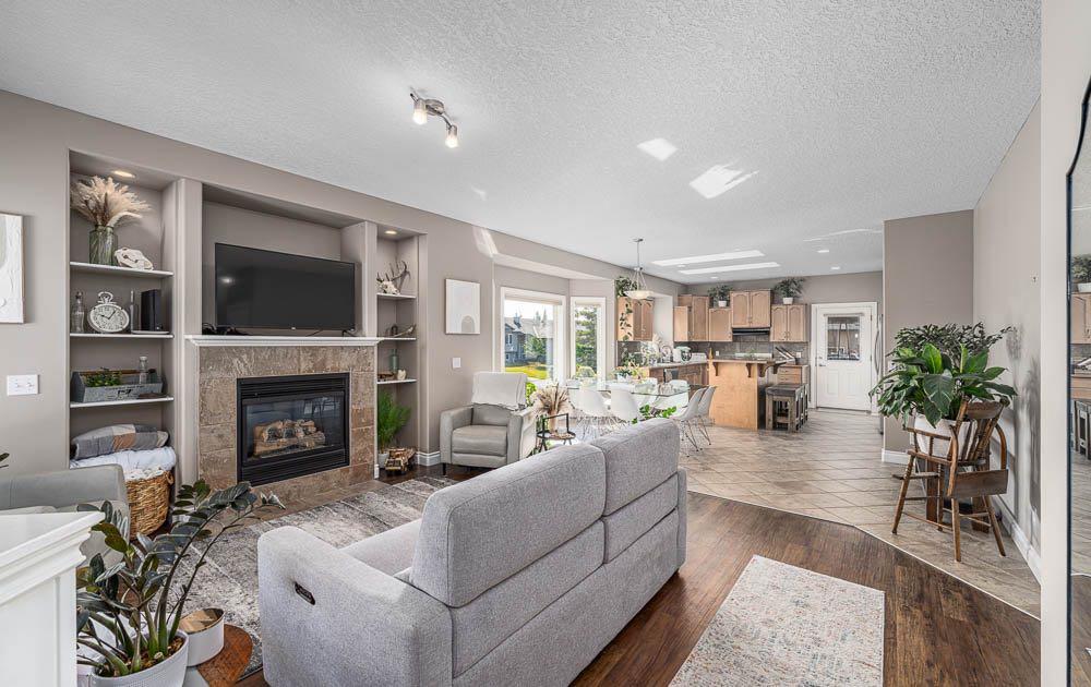 Welcome to 1015 Carriage Lane Drive in Carstairs! This beautiful raised bungalow offers over 1,300 sq. ft. of living space, with four generous bedrooms and three full bathrooms. You\'ll notice the quality craftsmanship right away, with features like rounded drywall corners, knockdown ceilings, and impressive 9-foot ceilings on both the main floor and the basement.