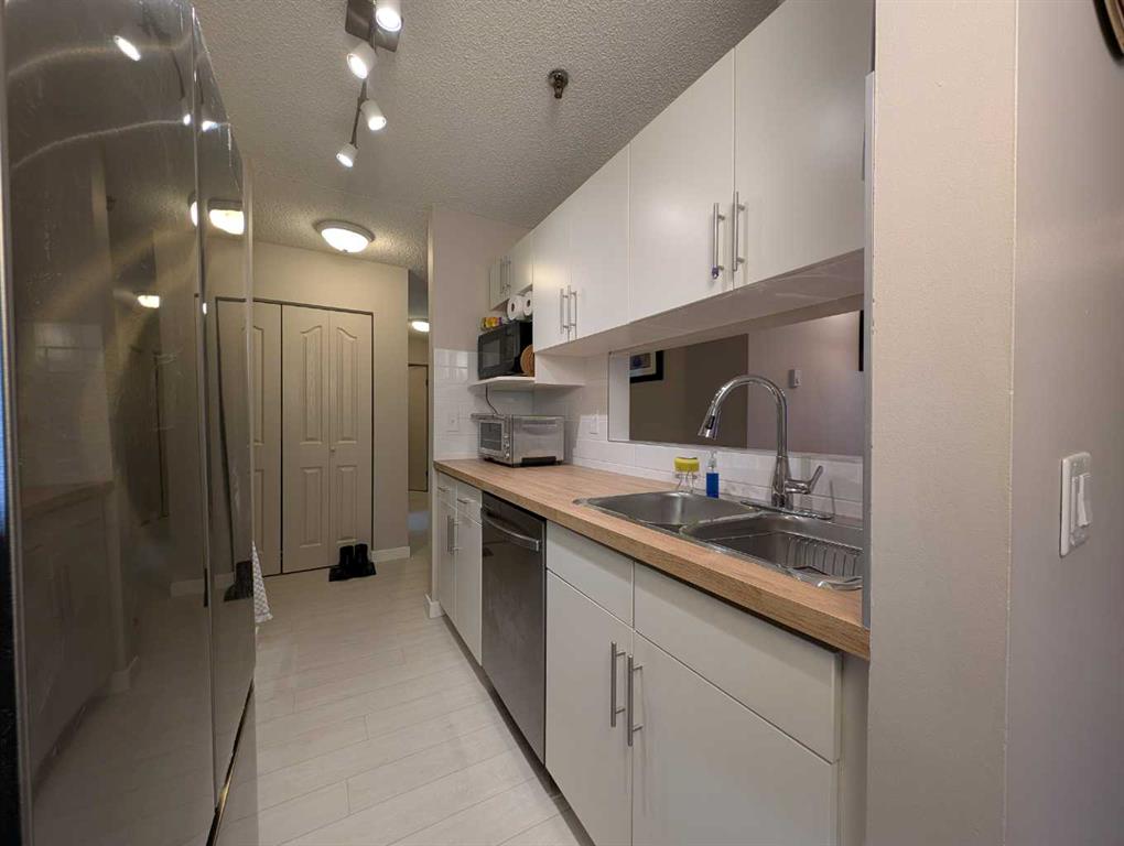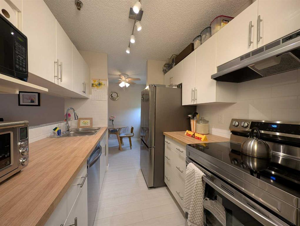 Discover this beautifully renovated 2-bedroom ground-level apartment, offering both style and convenience! Featuring new flooring throughout, contemporary countertops complemented by sleek white backsplash tiles and updated cabinets, plus all new stainless appliances, this unit is move-in ready. The bathroom boasts a new vanity sink and modern light fixture, while the in-unit laundry adds extra convenience —unlike some other units that rely on a shared coin-laundry room. Being on the ground floor, enjoy easy access without elevators, making moving in a breeze. The unit has exclusive patio space and includes one assigned underground parking space, bike storage and an assigned storage locker just steps across the hallway for added convenience. Plus, scheduled window replacements are getting ready by the condominium corporation. Located in an exceptional area, this home is just a short walk to Chinook Mall, with easy access to the C-Train and Glenmore Trail, making commuting effortless. A great opportunity for first-time buyers, downsizers, or investors—schedule your viewing today!
