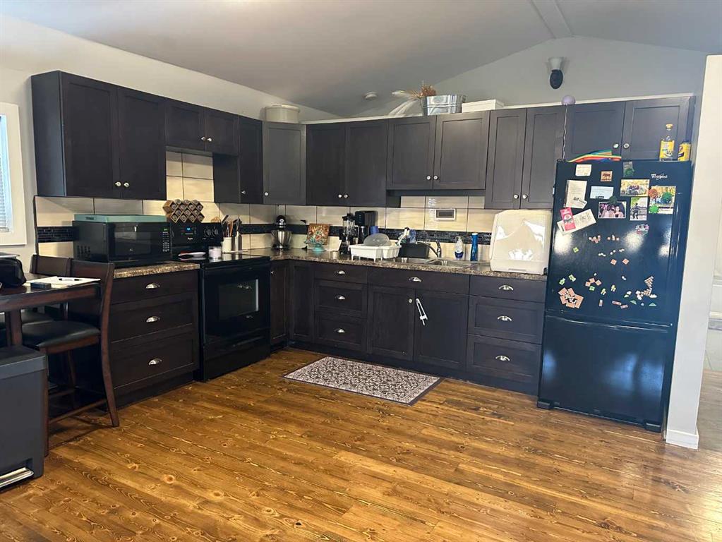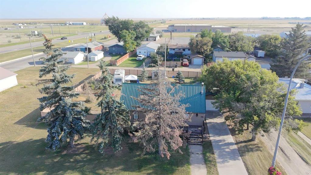 Looking to escape the city? Check out this cute 2 bedroom, 2 bathroom gem! Located in Vauxhall, just 20 mins from Taber on a large mature 100\' lot allowing plenty of space for a second garage, a large garden or simply enjoy the space! The home shows pride of ownership and has an open floor plan on the main level with a bedroom and 4pc bath as well. A second bedroom, 2pc bath and family room along with the laundry space are located in the lower level. With a long driveway and a single detached garage, there\'s ample parking space. You\'ll find a gas line for a BBQ on the front deck, a metal roof and pvc windows. Vauxhall offers restaurants, a grocery stores, law office, bank, K-12 school, tennis courts, outdoor pool, arena and well known baseball academy.