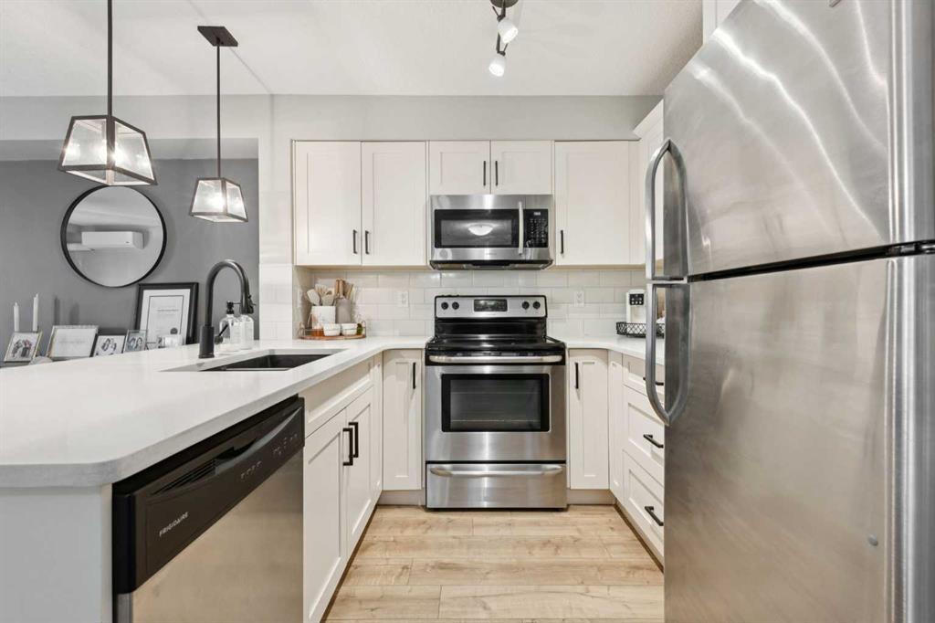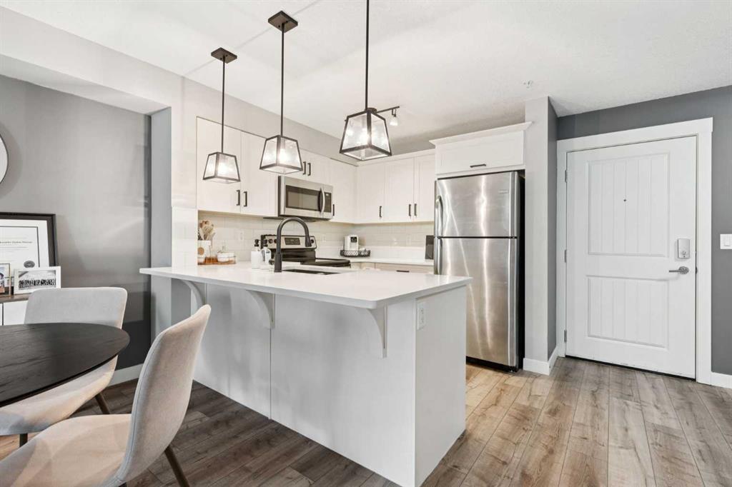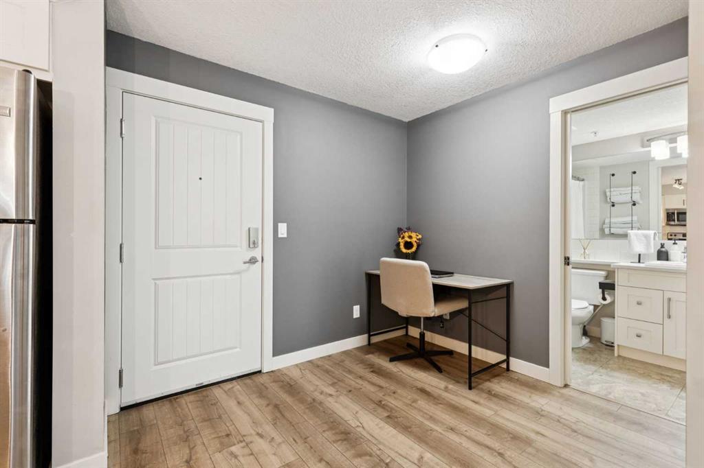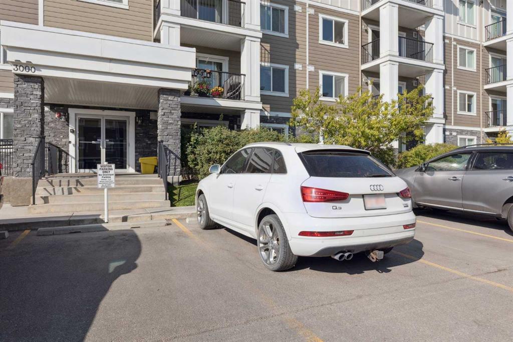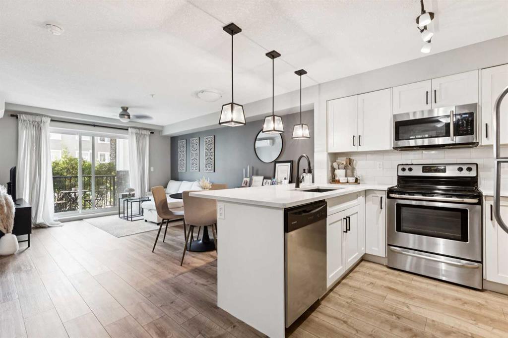 Welcome to Sage Place Unit #3103, where 581 sq ft feels remarkably spacious! This bright and inviting open floor plan is enhanced by a large NE balcony door, flooding the unit with natural light. Enjoy a sophisticated living experience with modern finishes, including upgraded lighting and hardware, elegant quartz countertops, and custom blinds in the primary bedroom. The tiled bathroom floor adds a touch of luxury, while the versatile flex space at the front entry offers additional functionality.The peninsula island not only provides ample prep space but also serves as a stylish seating area for hosting. You\'ll have the flexibility to create a dedicated dining area or expand your living room for even more comfort. Stay cool during the warm months with air conditioning—perfect for those 28 days a year when it\'s truly needed! The primary bedroom is generously sized, featuring a spacious walk-in closet and convenient access to the main bathroom. The double balcony, surrounded by mature landscaping, offers a rare sense of privacy and feels surprisingly expansive—an exclusive feature of the main floor units. Plus, your parking space is just steps away, located less than 10 feet from the balcony and positioned directly in front of the unit. With only one common wall, this unit provides a serene living environment. Don’t miss your chance to experience modern living at its finest in this stunning unit!