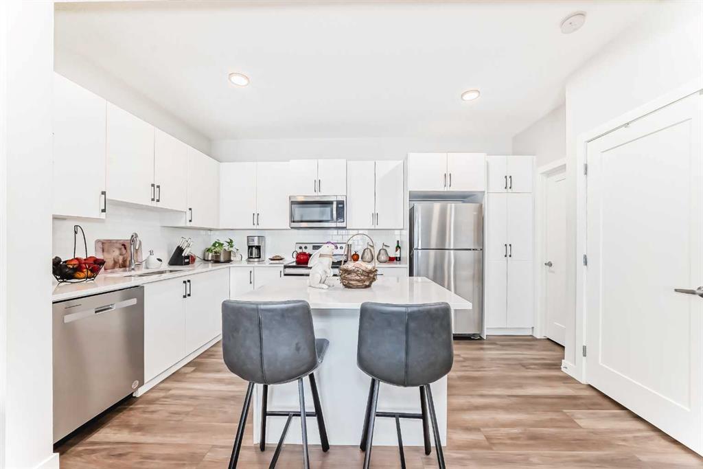 Welcome to your elegant 2-story townhouse nestled in the exclusive community of Tuscany. This upgraded corner unit with central air offers a bit of tranquility and convenience. The main living space boasts extra cabinets in the kitchen, complemented by upgraded sleek quartz countertops, an island and stainless steel appliances. An additional powder room has been added for your guests convenience, luxury vinyl flooring adds a touch of elegance, while plush carpeting provides comfort throughout the upper level. The upper level features a generously sized second room and convenient laundry with front load washer, dryer, along with a large main bathroom. Retreat to the master bedroom, complete with a large walkin closet and ensuite with; a walk-in shower, roller blinds on every window, including blackout blinds in the bedrooms. Out front you will find a private patio, with a gas bbq line to enjoy on summer nights. Located close to all amenities, including Crowchild Trail and Stony Trail, this townhouse offers both comfort and accessibility. Don’t miss the opportunity to make this your new home sweet home. Some of the photos are from a comparable unit and may not reflect the exact unit.