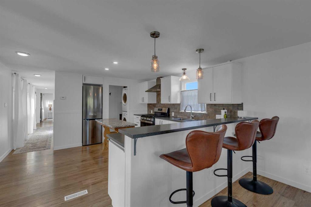 A home like this does not come along very often. This is a totally updated 2 bedroom, 2 bath manufactured home with a self contained and sound proofed, legal 1 bedroom suite. The suite even has it’s own private deck. This beautifully designed and refinished home is complimented by a private oasis lot, covered deck, pond with waterfall, and a double garage with lots of storage space in the attic. Attention to detail is evident throughout this property. Strategically located across from Founder’s Park and playground and close to shopping and the recreation center. Make this show home your own.