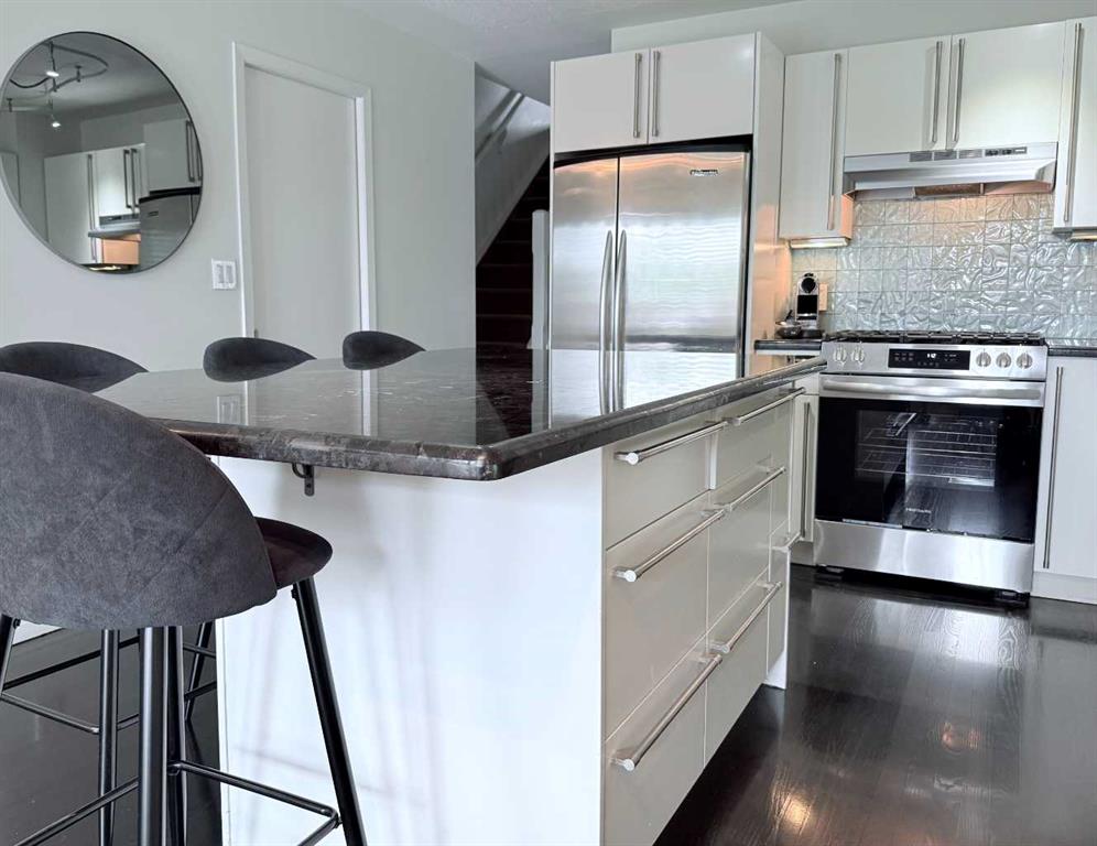 Located on one of the best streets in Marda Loop, this exquisite DETACHED home offers the perfect blend of luxury, comfort, and convenience. With breathtaking CITY VIEWS 2 levels, a south-facing backyard oasis, and elegant finishes throughout, this is the home you\'ve been waiting for! Step inside to find real oak hardwood floors on the main level, setting the tone for timeless elegance. The bright and inviting living room features a cozy fireplace while the spacious dining room offers an ideal space for entertaining. The heart of the home is the stunning, oversized kitchen, complete with a massive island, NEW Gas stove, gleaming granite countertops, white cabinetry, stylish glass tile backsplash and family room that has double doors leading to sunny south deck and yard. Whether you\'re hosting a gathering or enjoying a quiet meal, this kitchen delivers both functionality and beauty.